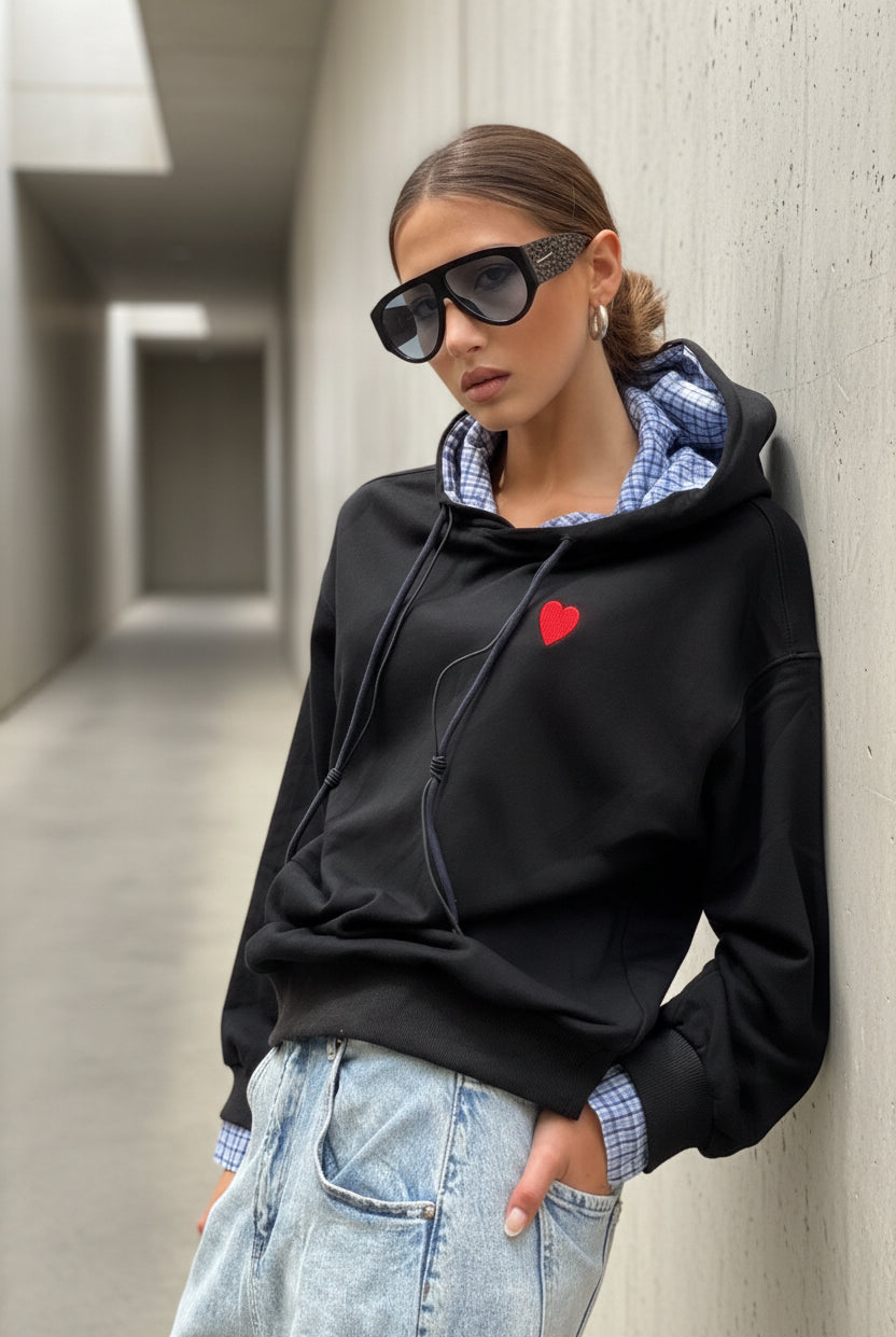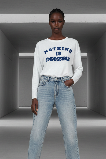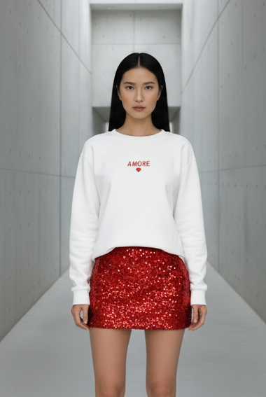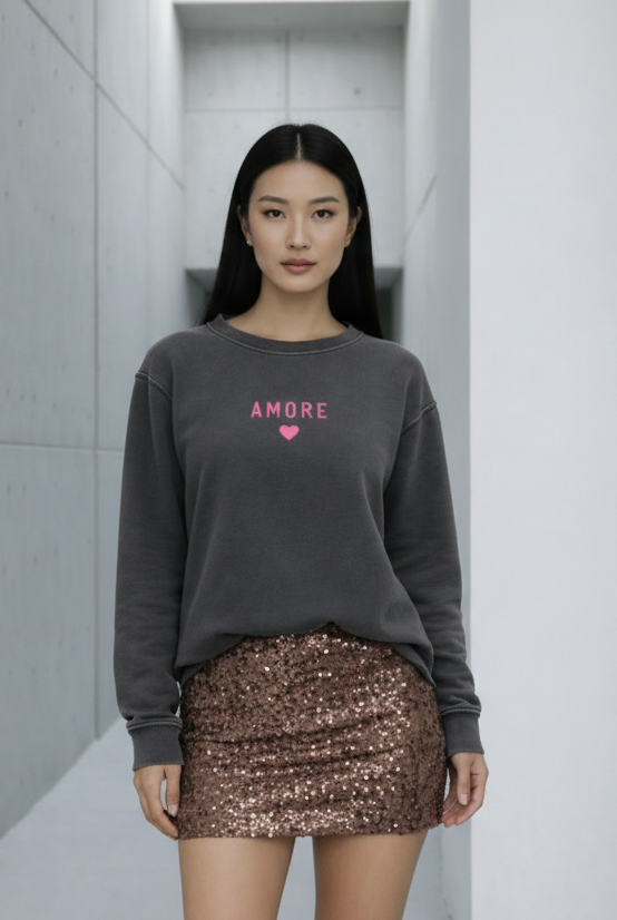 The sparkle adds a bold, feminine edge, while the relaxed sweater keeps the look modern, effortless, and cool.