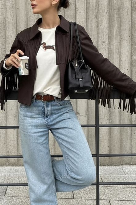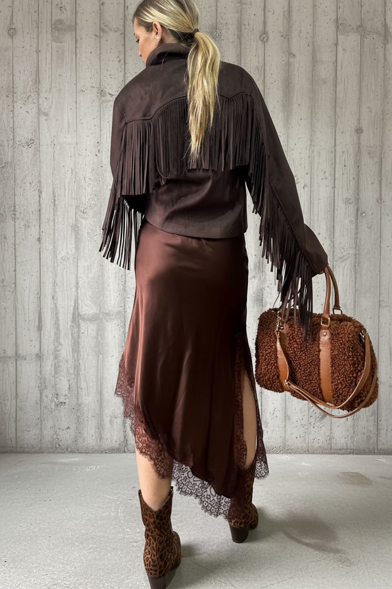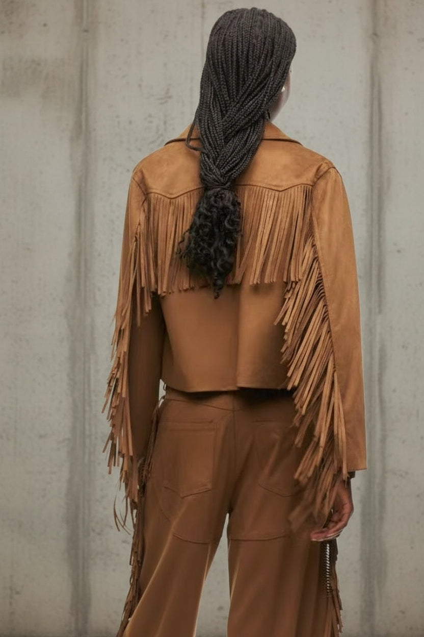 L suede franje jacket