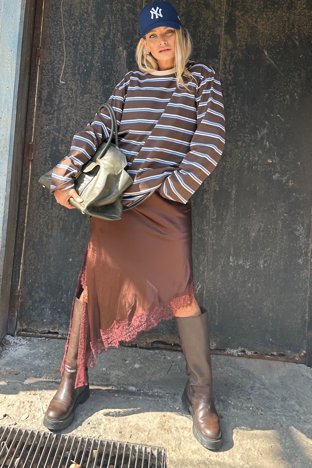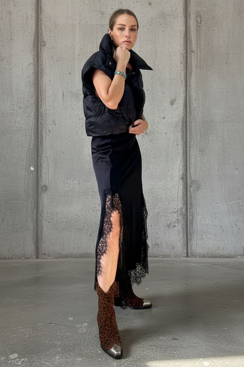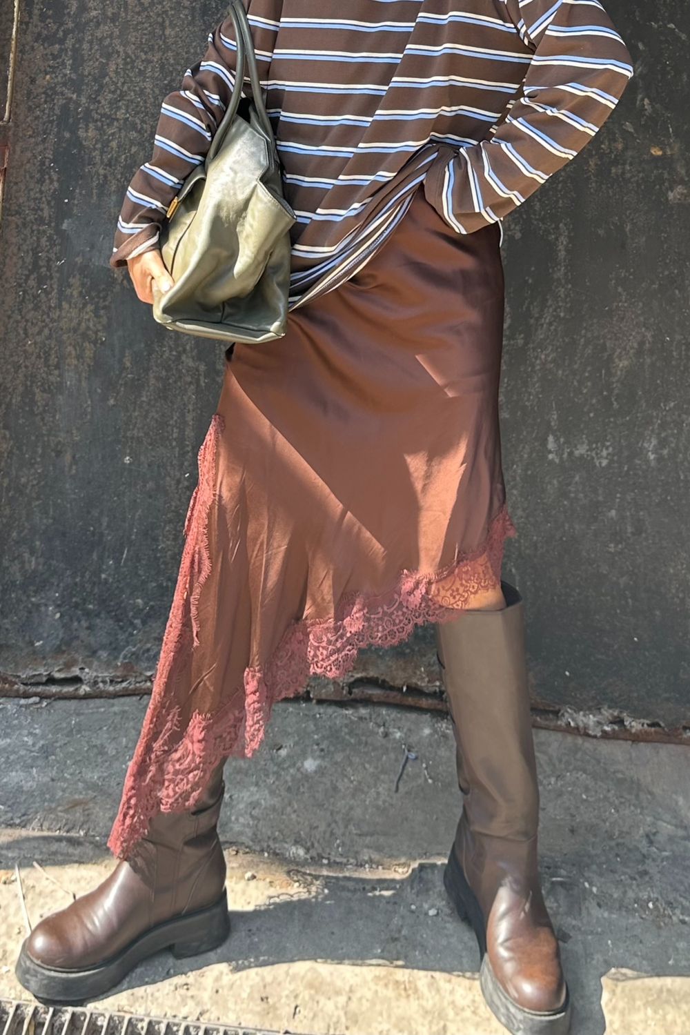 L silk midi skirt