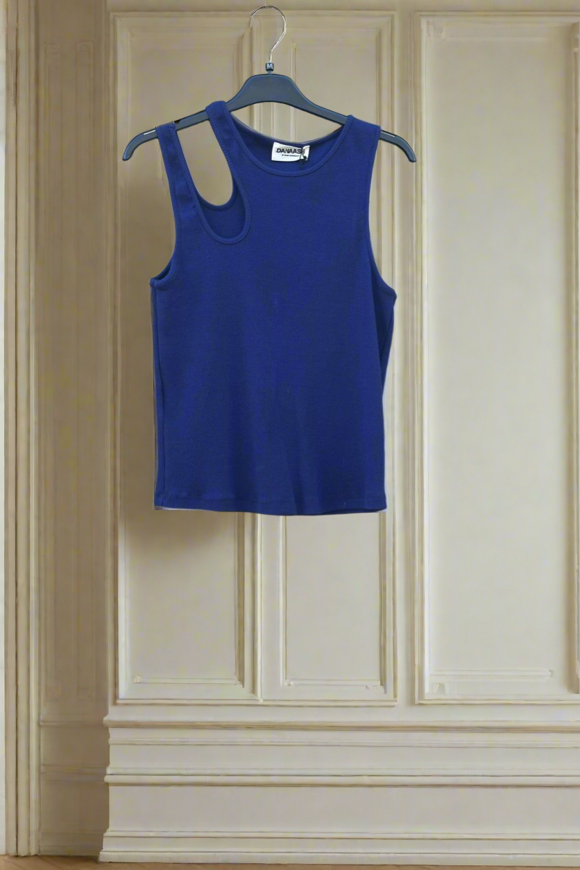 L Rib cut tank blue