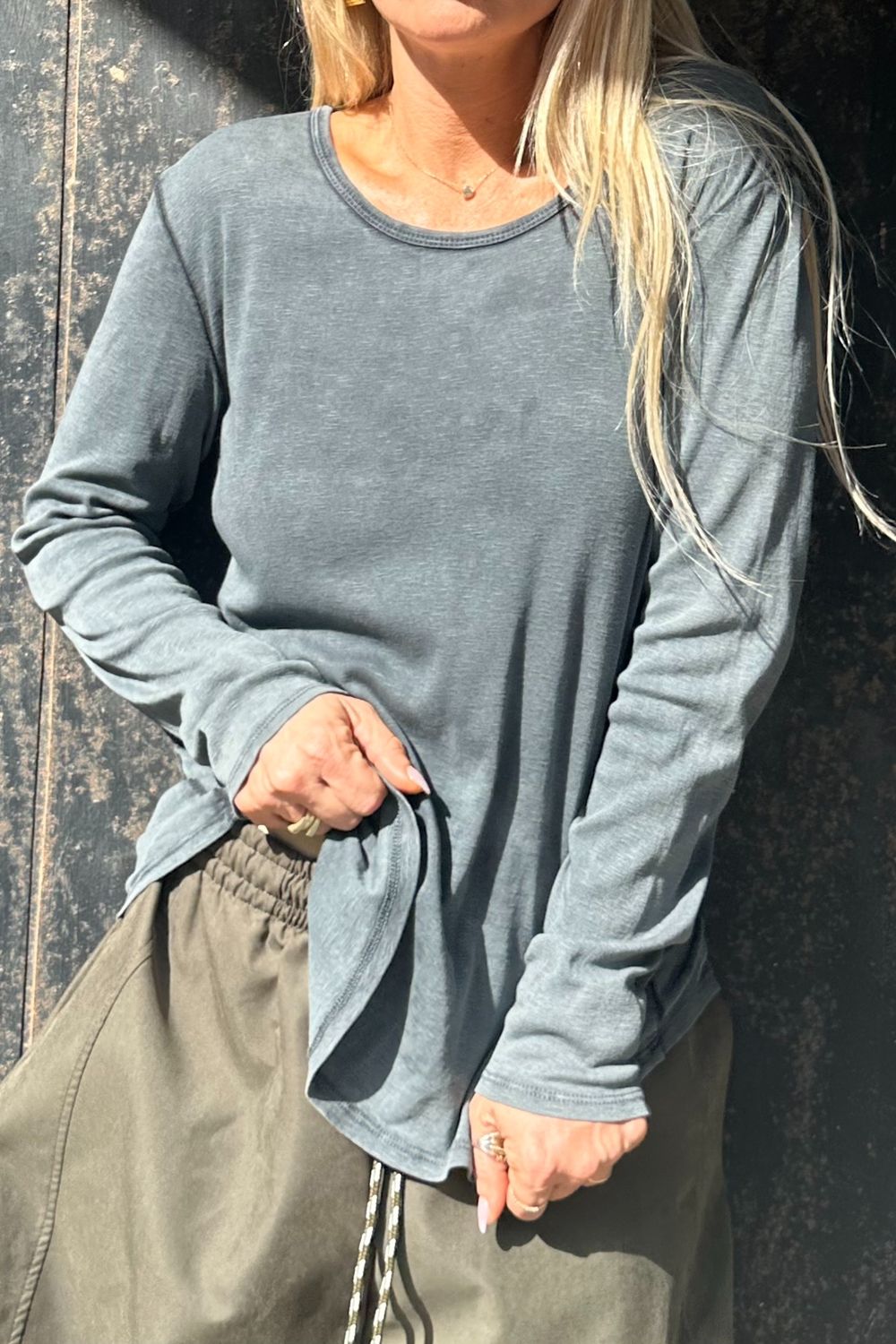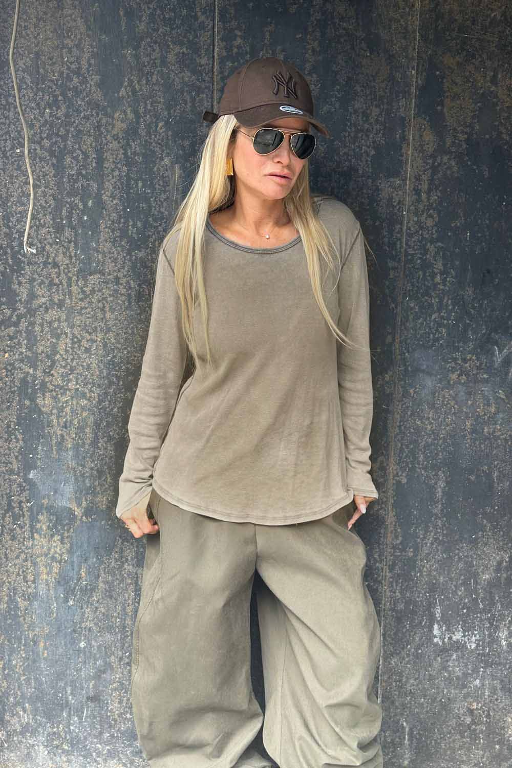 טי שירט ארוכת שרוול בגזרה רחבה ומשוחררת, עשויה מבד כותנה רך, נושם ונעים במיוחד על הגוף.