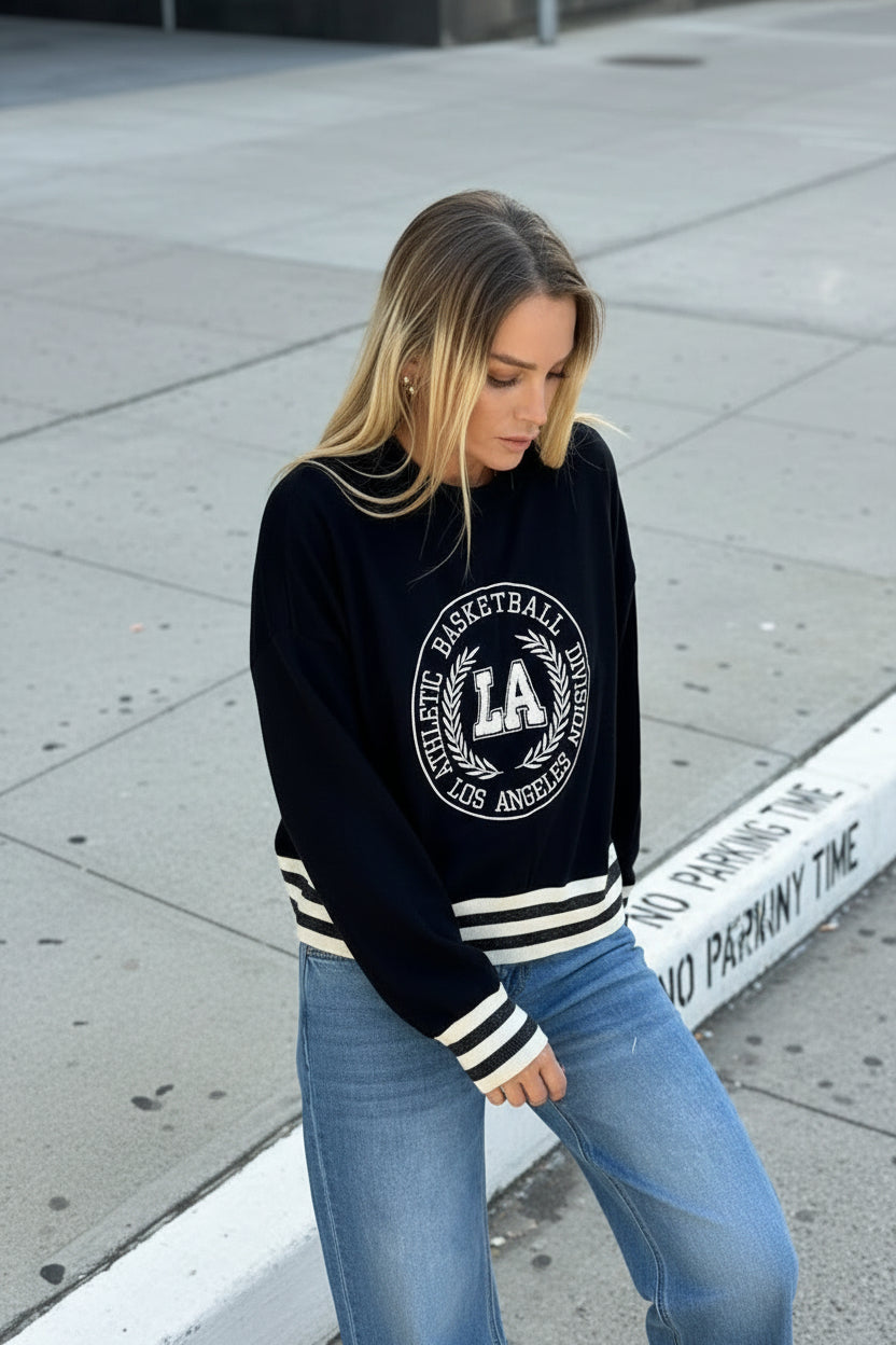 סריג אוברסייז נוח וסופר סטייל, עם הדפס LA – Athletic Basketball Division במראה קולג’ יוקרתי.