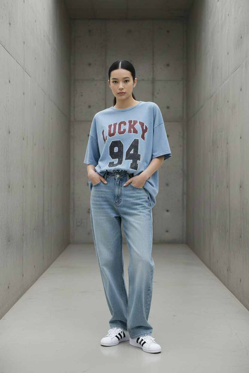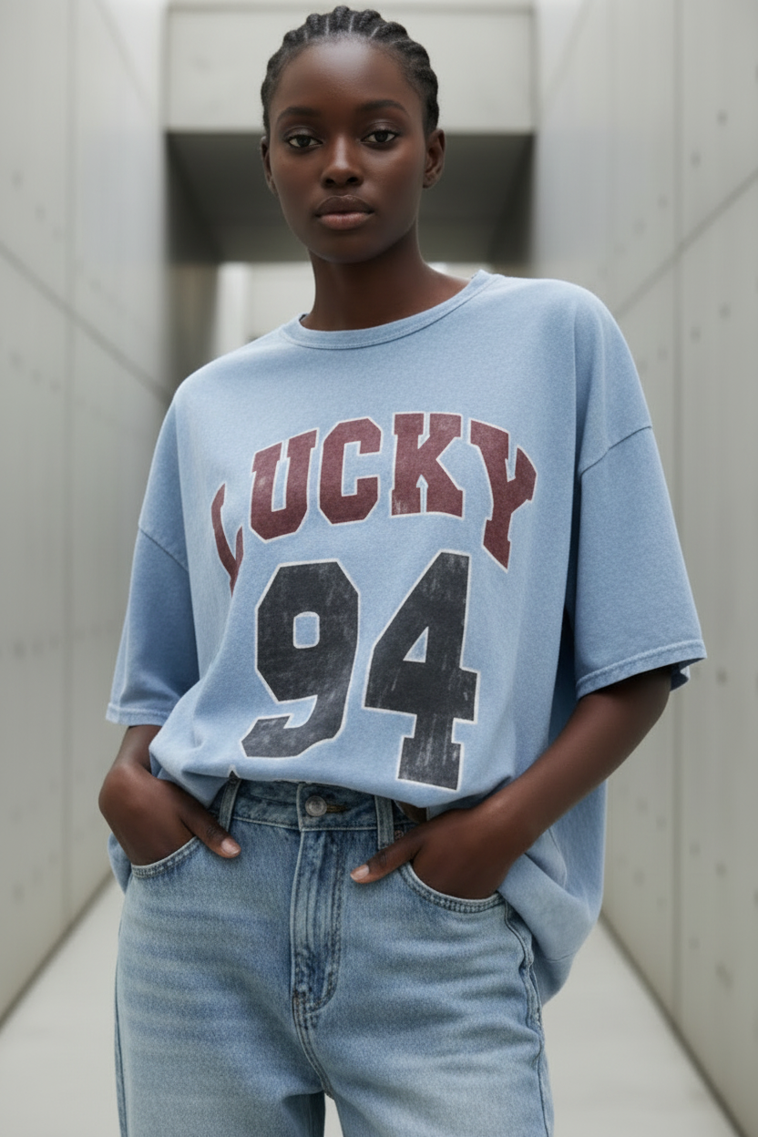 טי־שירט אוברסייז מעוצבת בקו נקי ומדויק, מבד נעים ונמתח שמונח על הגוף בצורה משוחררת וקלילה.