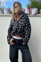 שרוולים ארוכים עם בטנת קונטרסט תכלת בהדפס נקודות קטנות – שמוסיפה טאץ’ ייחודי כשמקפלים את השרוול