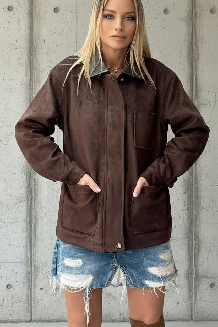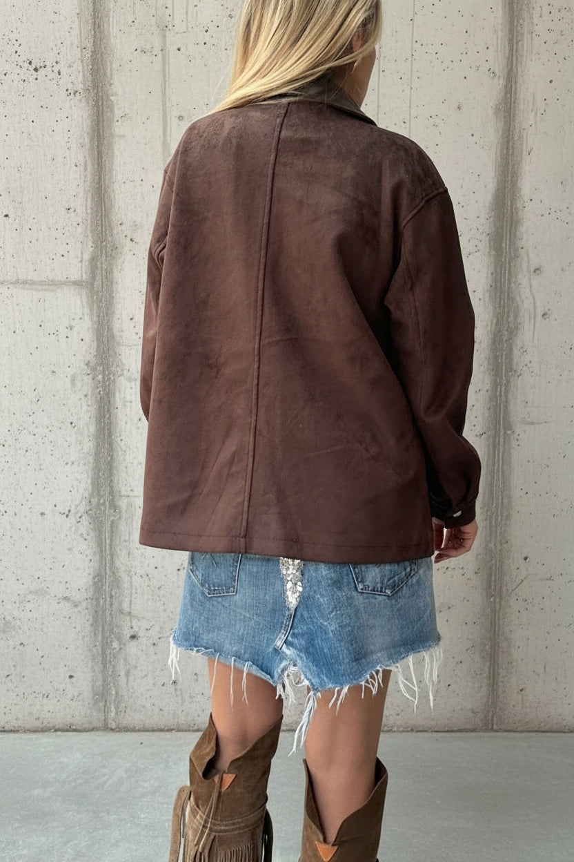 ✨ ג׳קט זמש קלאסי בצבע שוקולד – ONE SIZE ✨