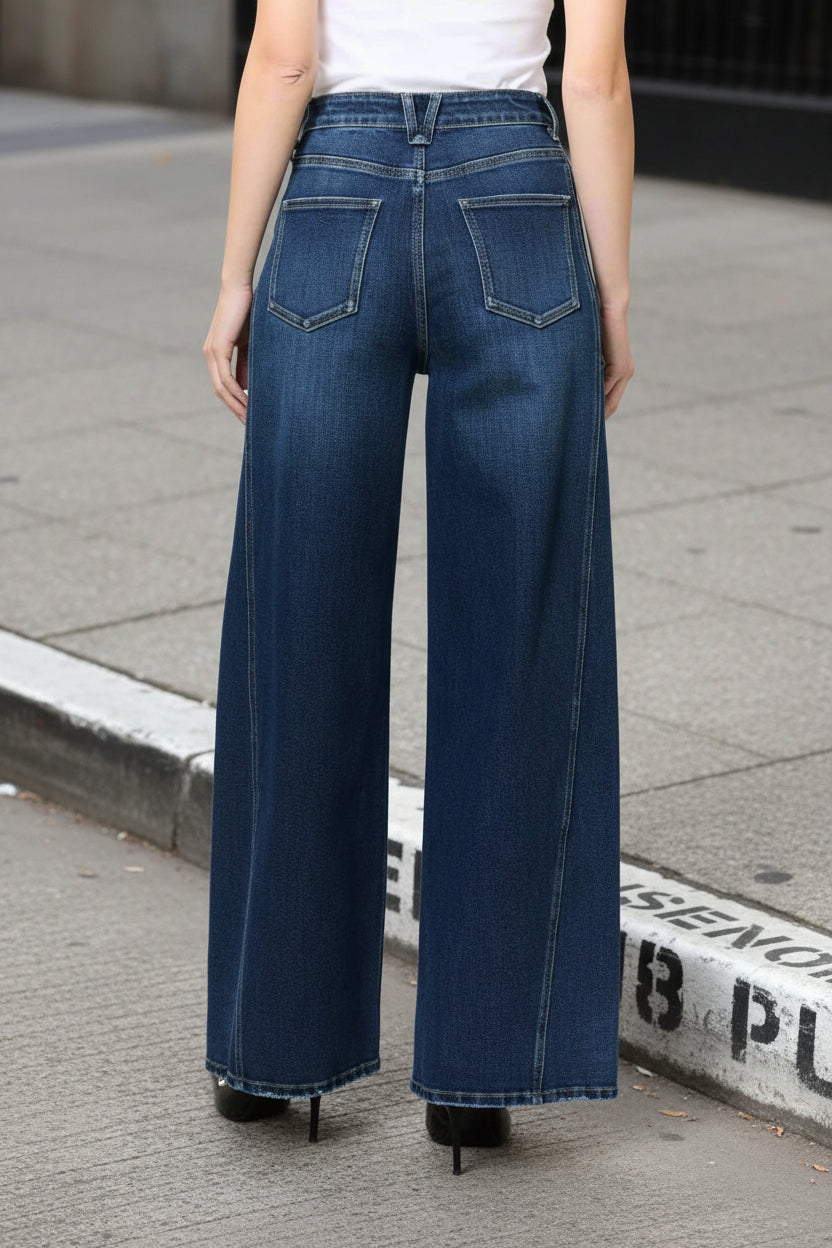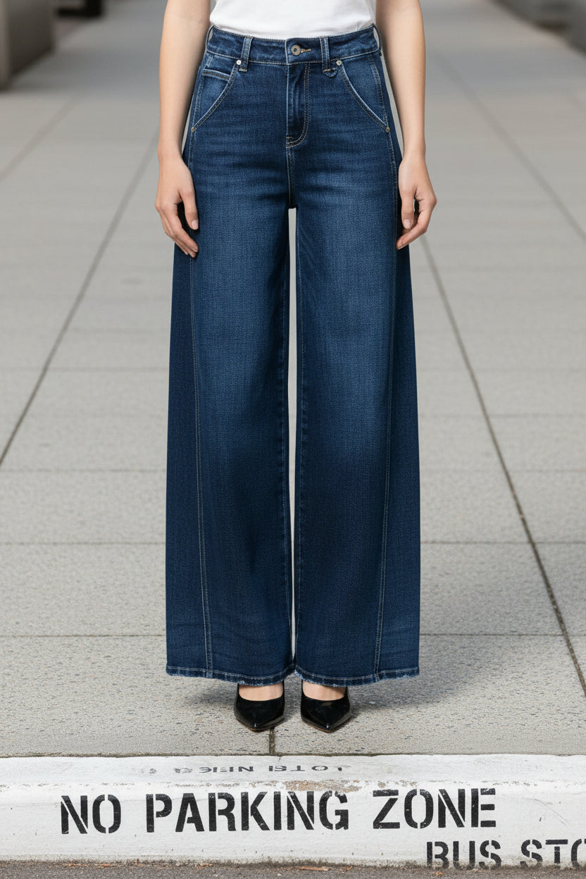 מכנס ג’ינס בגזרת Wide Leg גבוהה ומחמיאה, עשוי בד דנים איכותי בשטיפה כחולה קלאסית. הגזרה הרחבה והישרה יוצרת מראה אלגנטי אך משוחרר, מושלם לשילוב עם חולצת טי יומיומית או חולצה אלגנטית ללוק ערב מתוחכם. פריט על־זמני ונצחי שכל אחת חייבת בארון