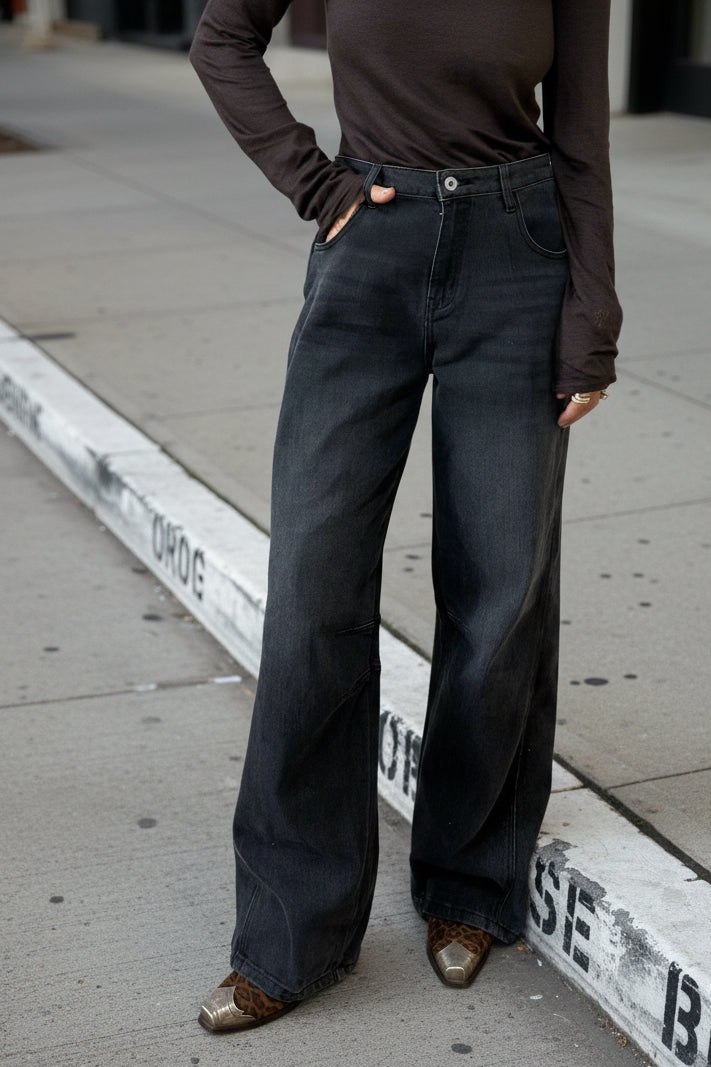D Black wide denim