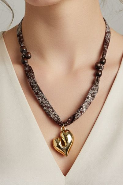 במרכזו תליון לב מוזהב בגימור מבריק, שמוסיף טאץ׳ נשי ומלא סטייל.