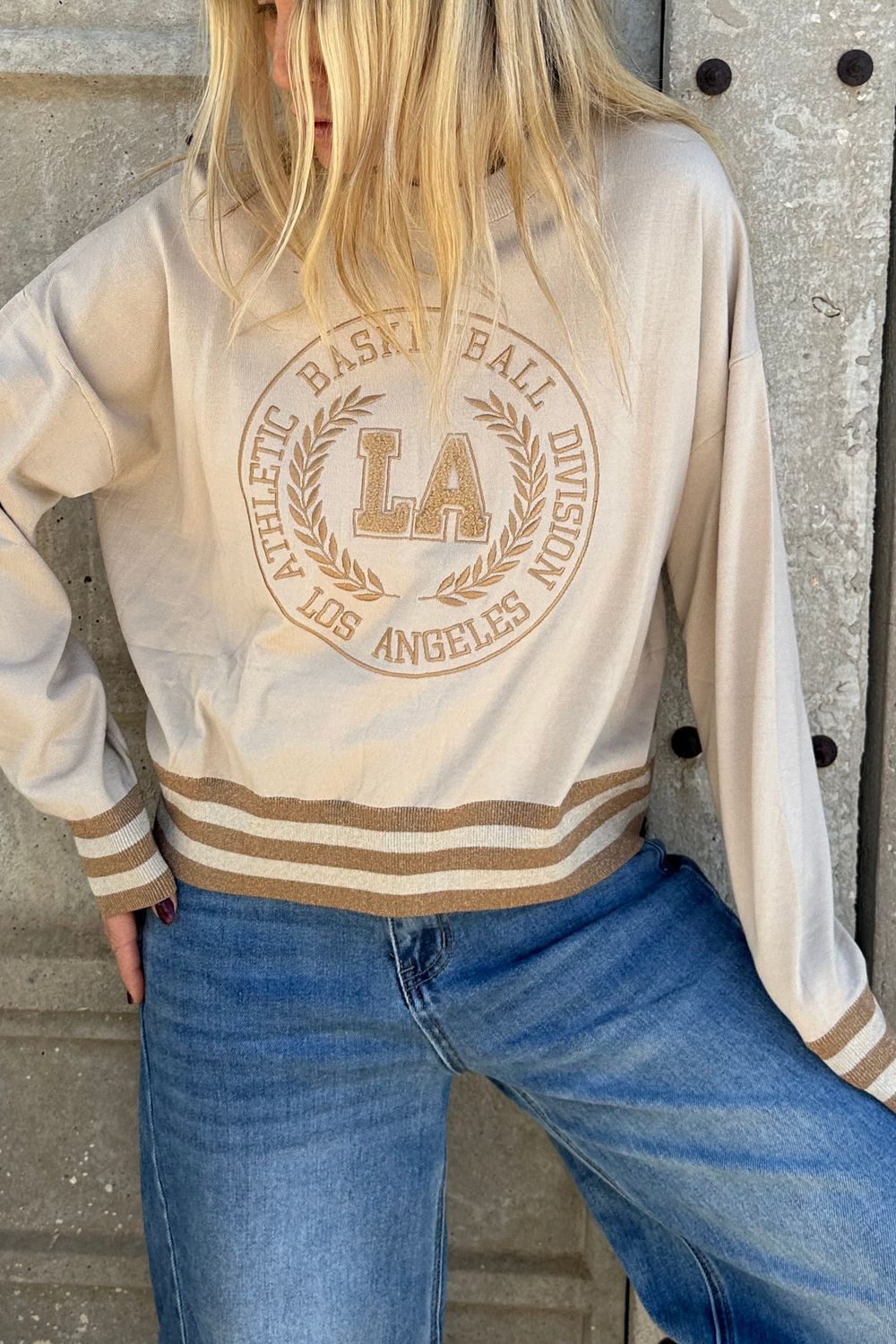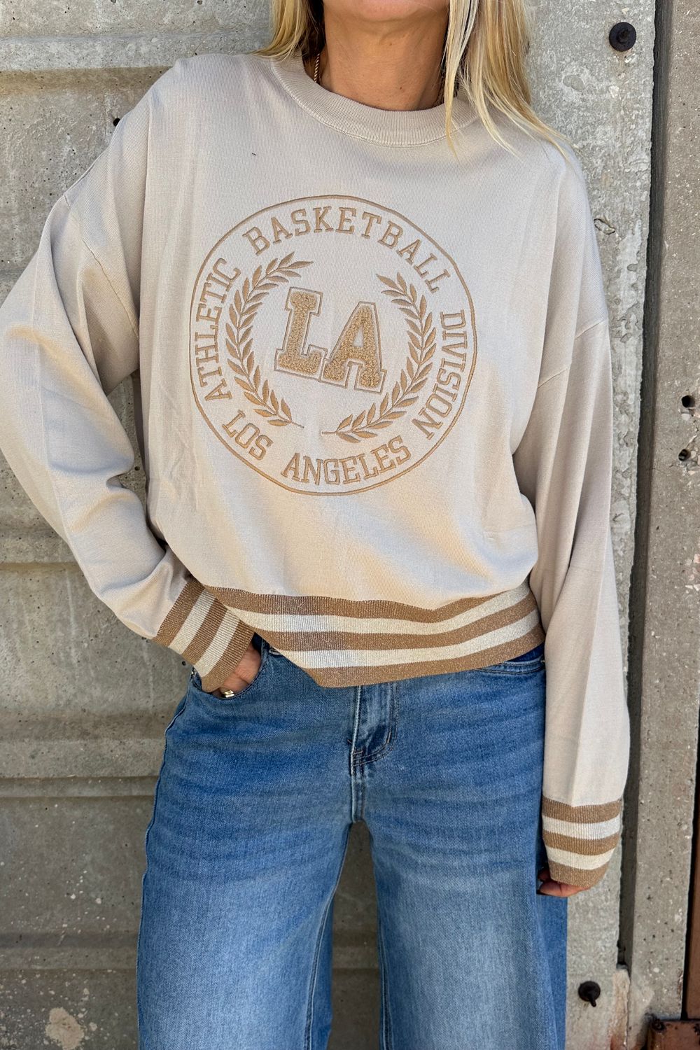 סריג אוברסייז נוח וסופר סטייל, עם הדפס LA – Athletic Basketball Division במראה קולג’ יוקרתי.