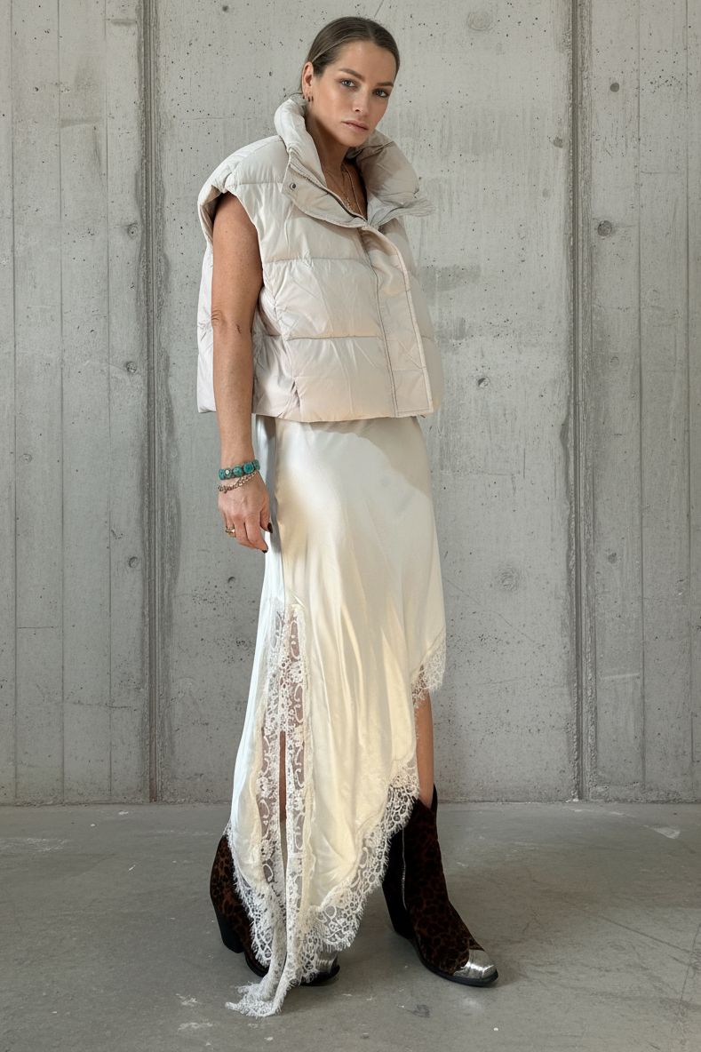 גזרה א-סימטרית עם נפילה רכה שמאריכה את הרגליים ויוצרת מראה נשי, מתוחכם וסופר עדכני.