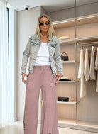 גזרה רחבה וזורמת, מותן גמישה ונוחה במיוחד, בד רך ונשפך שמרגיש קליל על הגוף ונותן מראה מתוחכם אך לא מתאמץ.