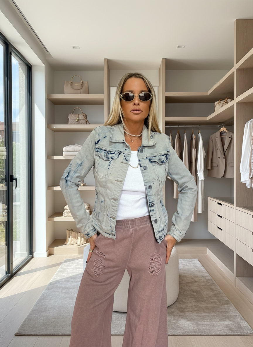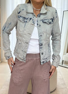 גקט ג׳ינס בסטייל וינטג׳־קז׳ואל עם שטיפה בהירה ודיטיילים מעודנים בגימור פרימיום.