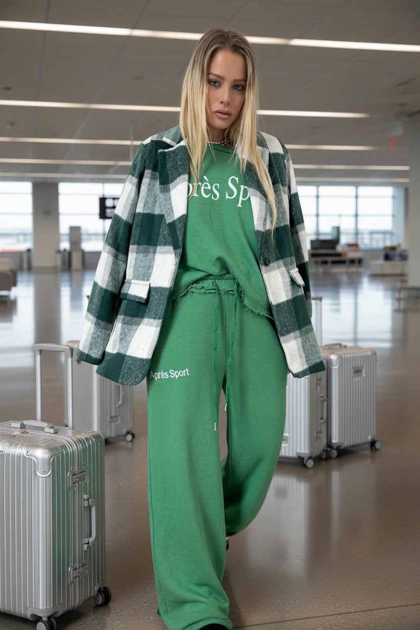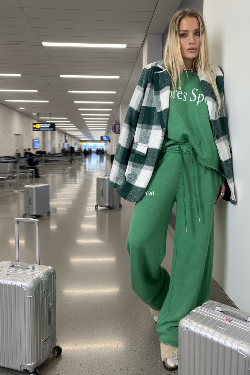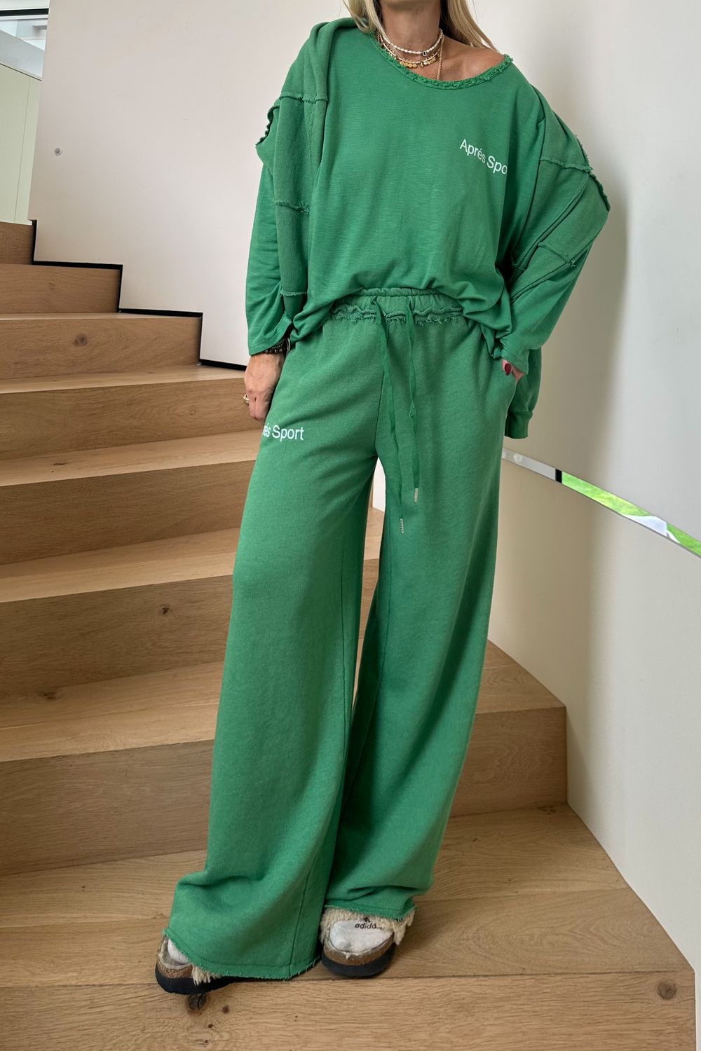 קצוות פרומים מעניקים מראה עדכני ומשוחרר, והדפס Après Sport קטן בצד מוסיף טאץ’ יוקרתי ונקי.