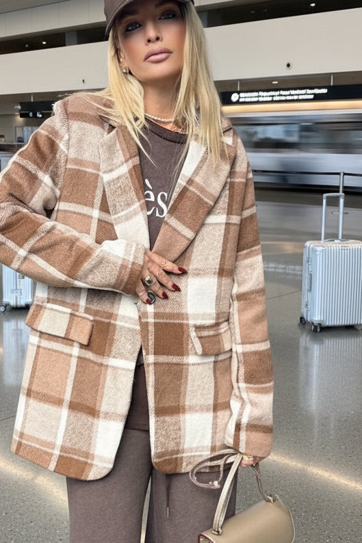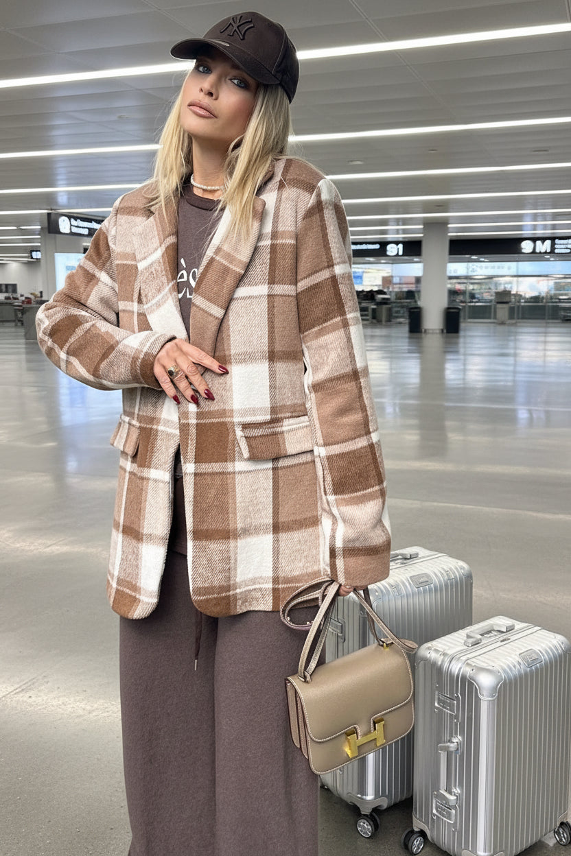 גקט משבצות בגזרת אוברסייז ישרה ונוחה