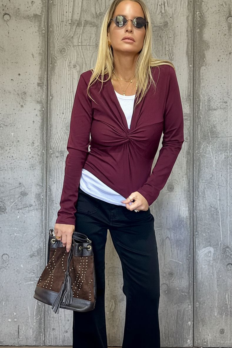 גזרת V פתוחה שנותנת טאץ’ אלגנטי עם ניחוח סקסי – מושלמת לשילוב עם ג’ינס גבוה, חצאית או מכנס בלון עדכני.