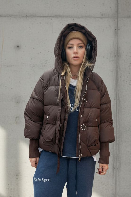 מעיל פוך קצר, קליל ומחמם בעיצוב סטריט־שיק מודרני.