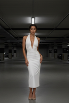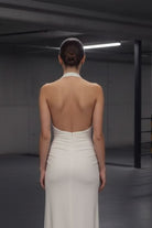 שמלת ערב מקסי מחטבת בצבע לבן