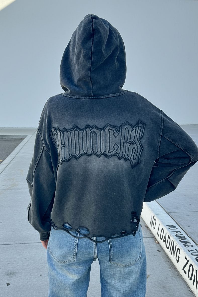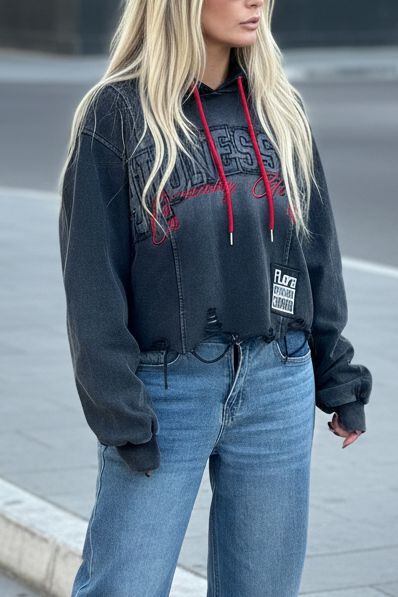 סווטשירט אוברסייז עם קפוצ’ון, מבד רך במראה ווש (washed).
