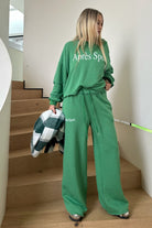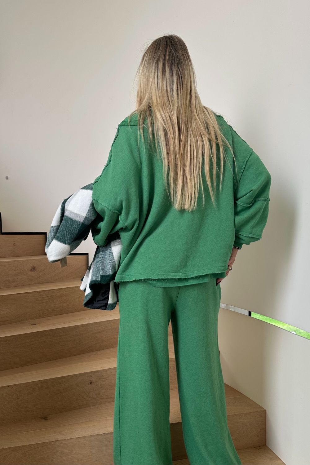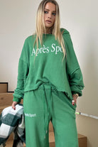 הדפס Après Sport בחזית, קצוות פרומים ותפרים חיצוניים שנותנים מראה מודרני ואורבני.