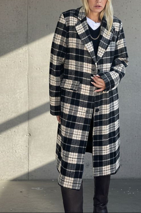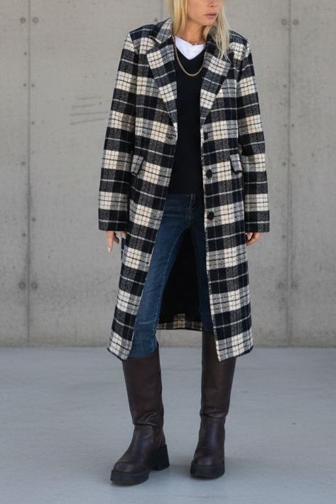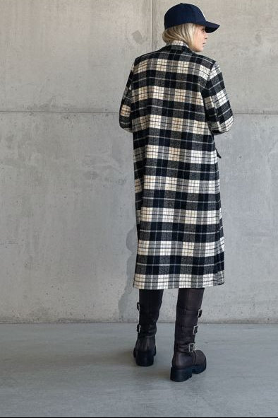 מעיל משובץ בעל מראה קלאסי ועל-זמני, בגזרה ישרה ומעט אוברסייז שמחמיאה לכל מבנה גוף. עשוי בד נעים וחמים במראה חורפי מושלם, עם דוגמת משבצות -שיא הטרנד של העונה.