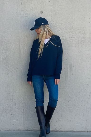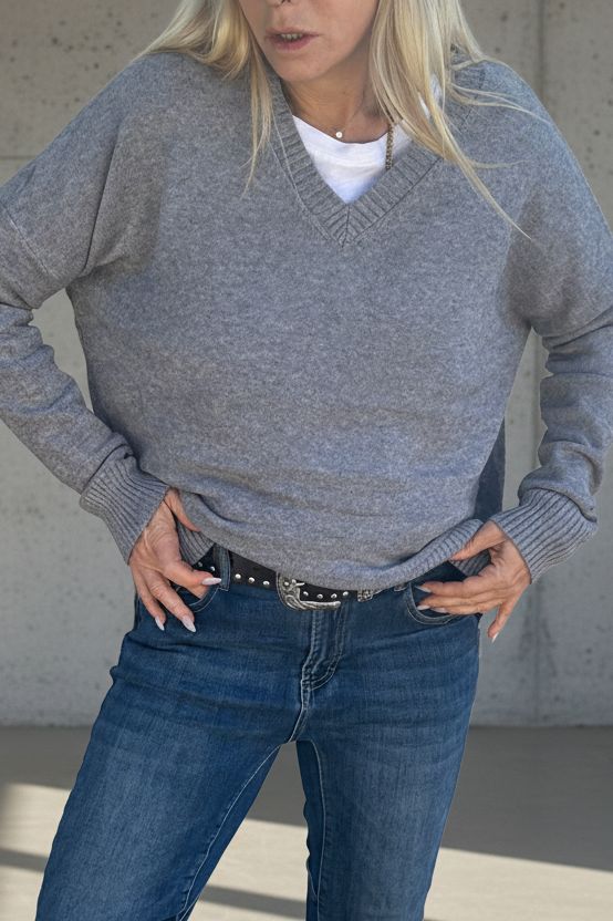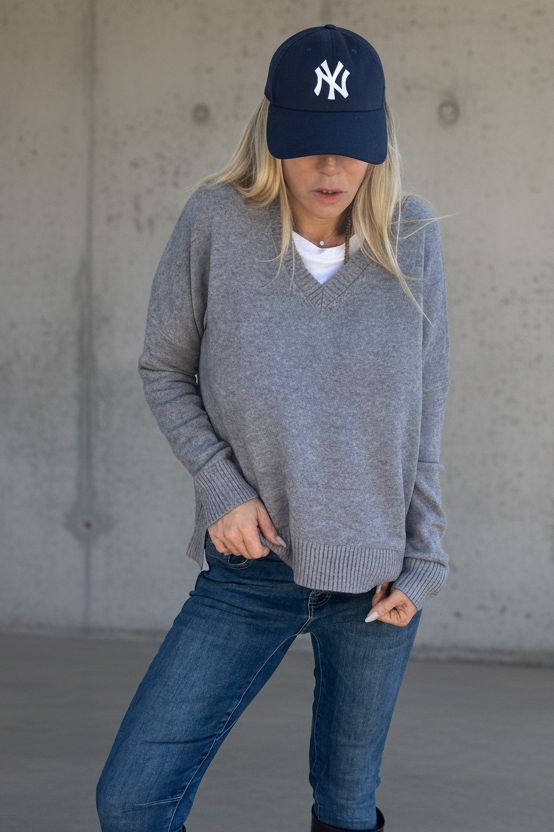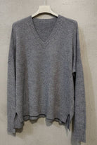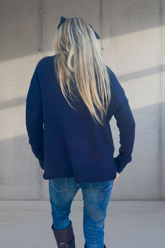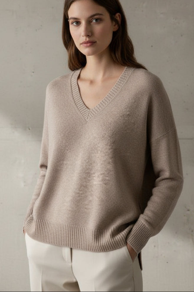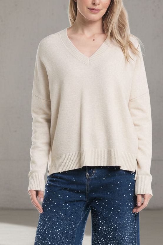 סריג רך ונעים למגע בגזרת אוברסייז v מחמיאה, עם נפילה טבעית ואלגנטית על הגוף.