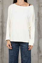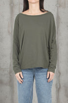 חולצת כותנה רכה ונעימה בגזרת אוברסייז קלילה, עם מחשוף רחב וצוואר עגול מעט שניתן להוריד על הכתף לסטייל נשי ולא מתאמץ.
