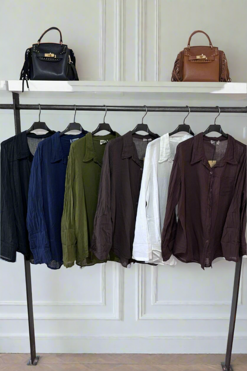 חולצת וואל מכופתרת קלילה ואוורירית, עשויה מבד נשפך ונעים למגע