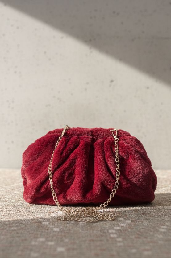 תיק ערב מפנק ומלא סטייל, עשוי פרווה שחורה רכה במראה יוקרתי ואלגנטי.