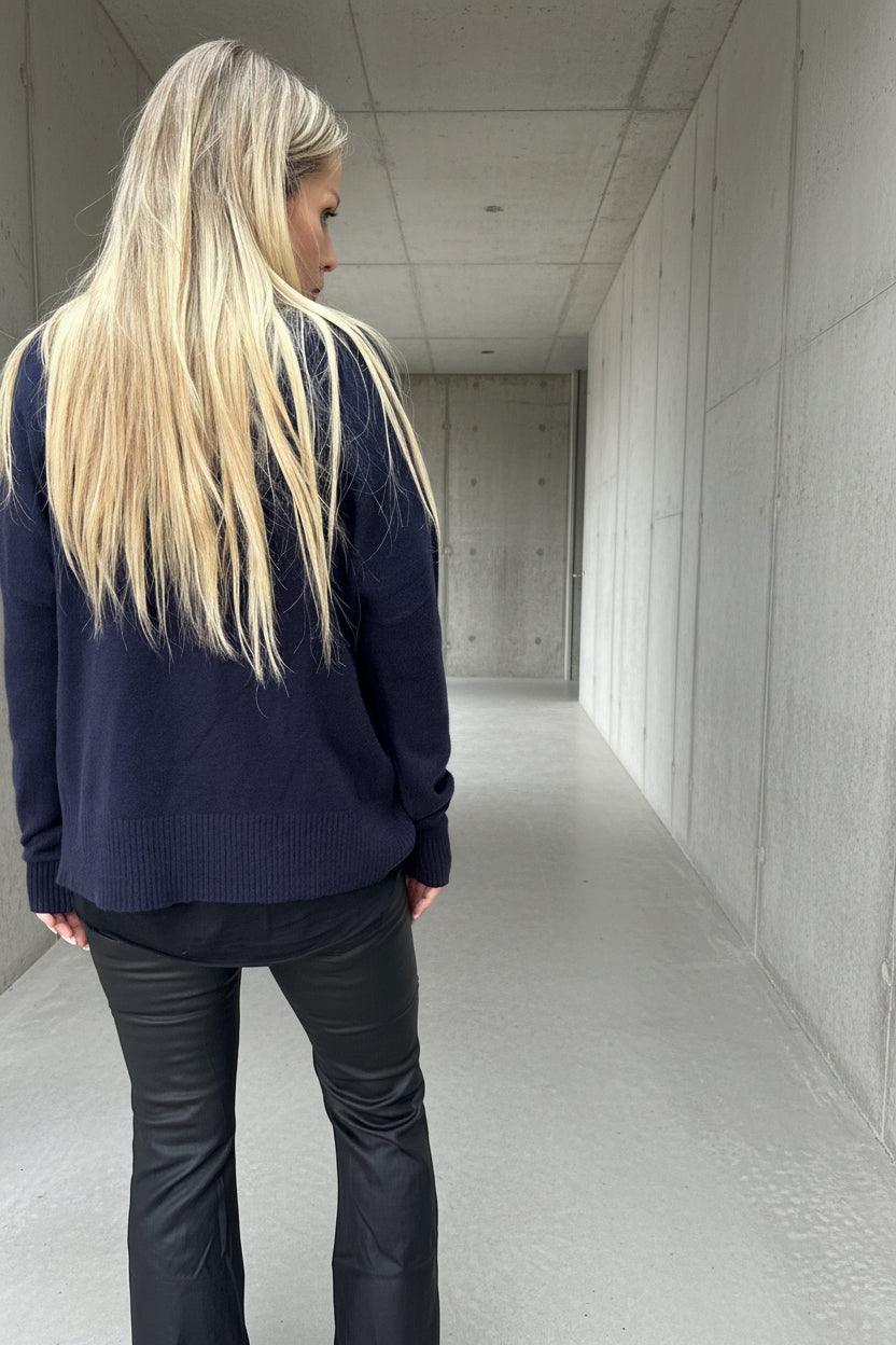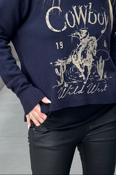 סריג נעים בגזרת וי עשוי בעבודת יד של רקמות במפתח הצוואר והדפס בחלק הקדמי