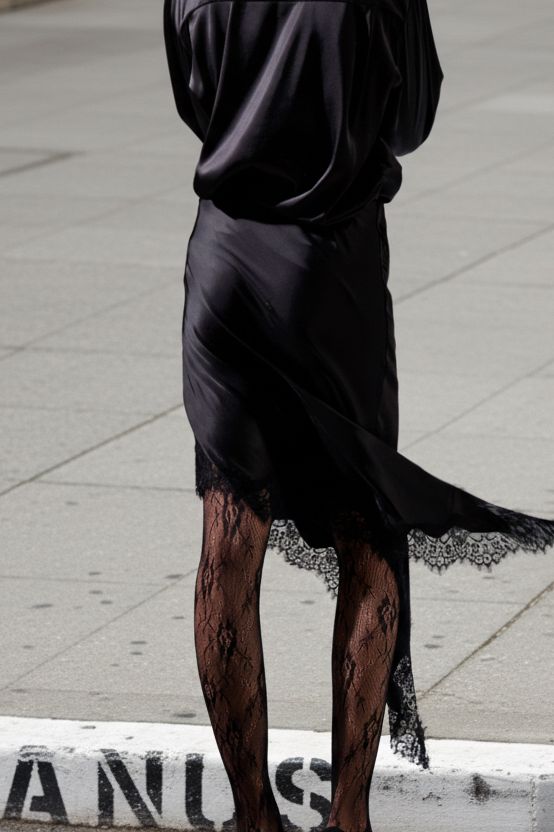 במראה משי יוקרתי עם פסי תחרה לאורכה
