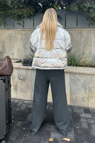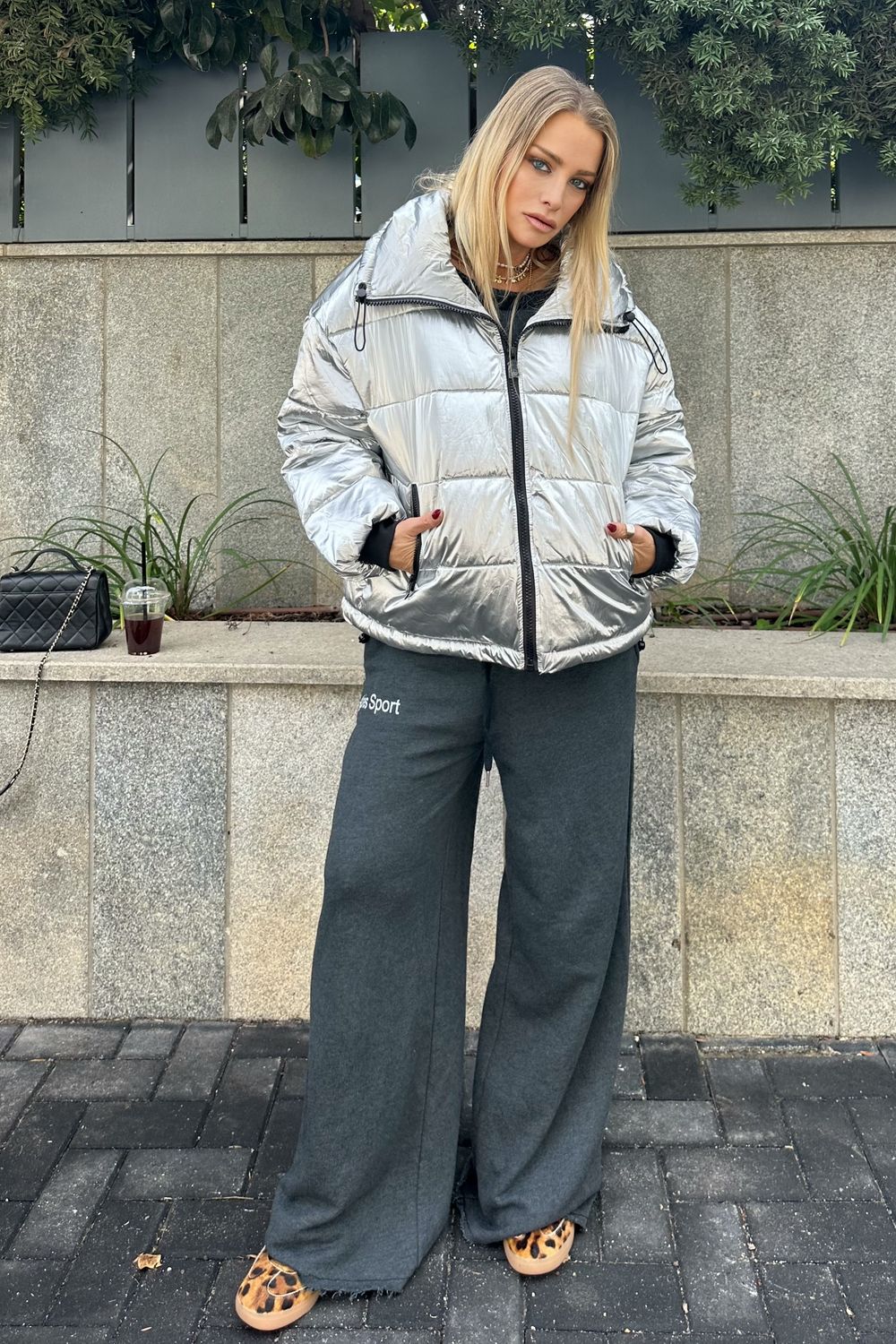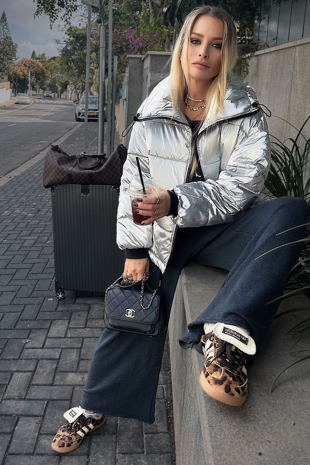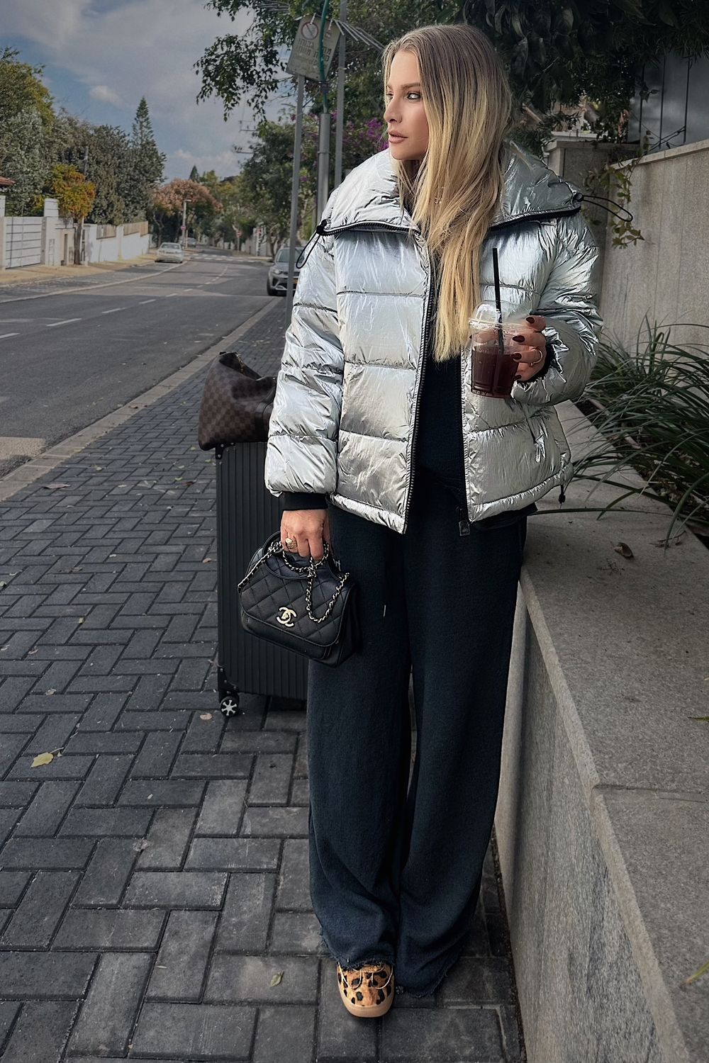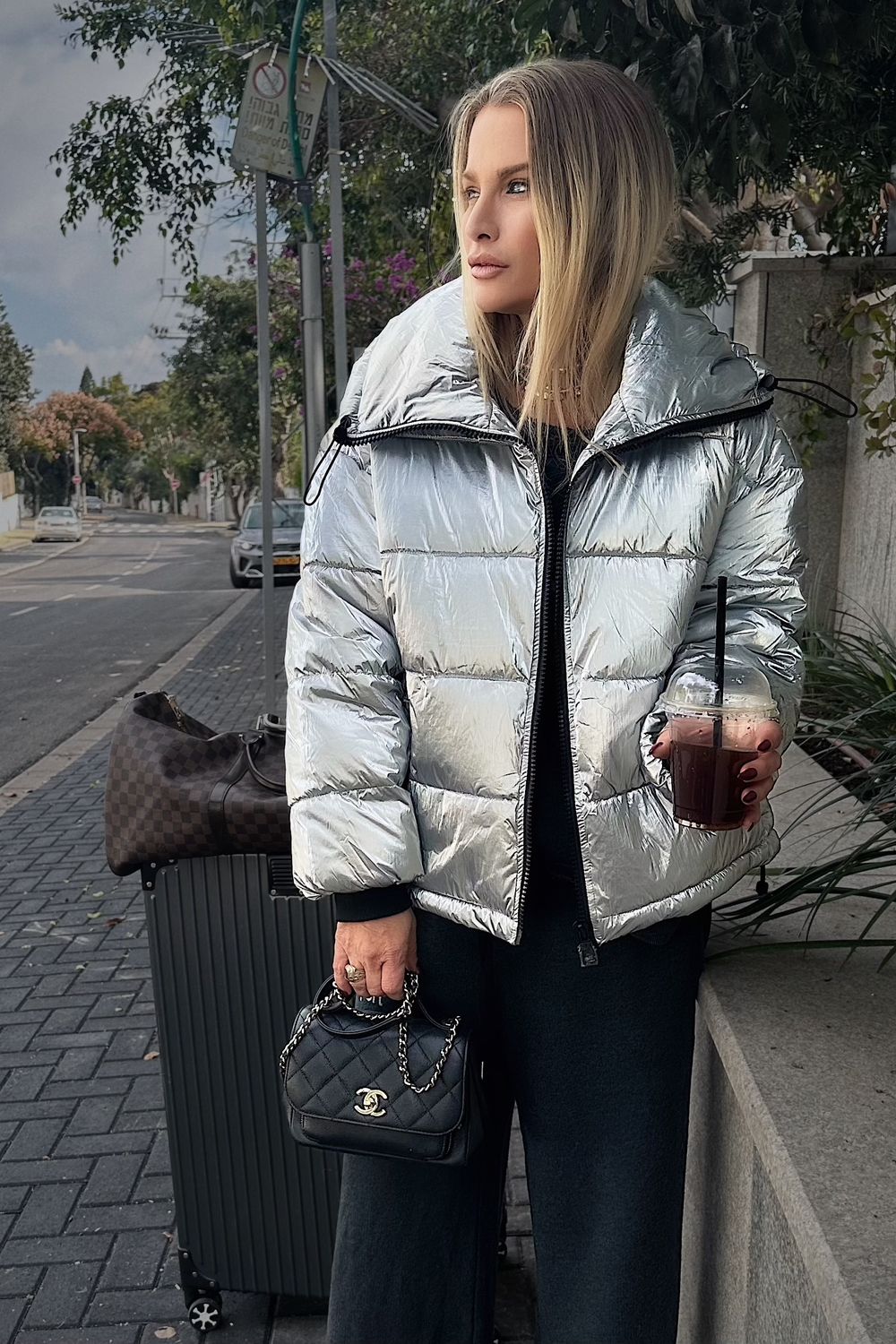 מעיל פוף כסוף בוהק שמכניס דרמה וסטייל לכל לוק חורפי.