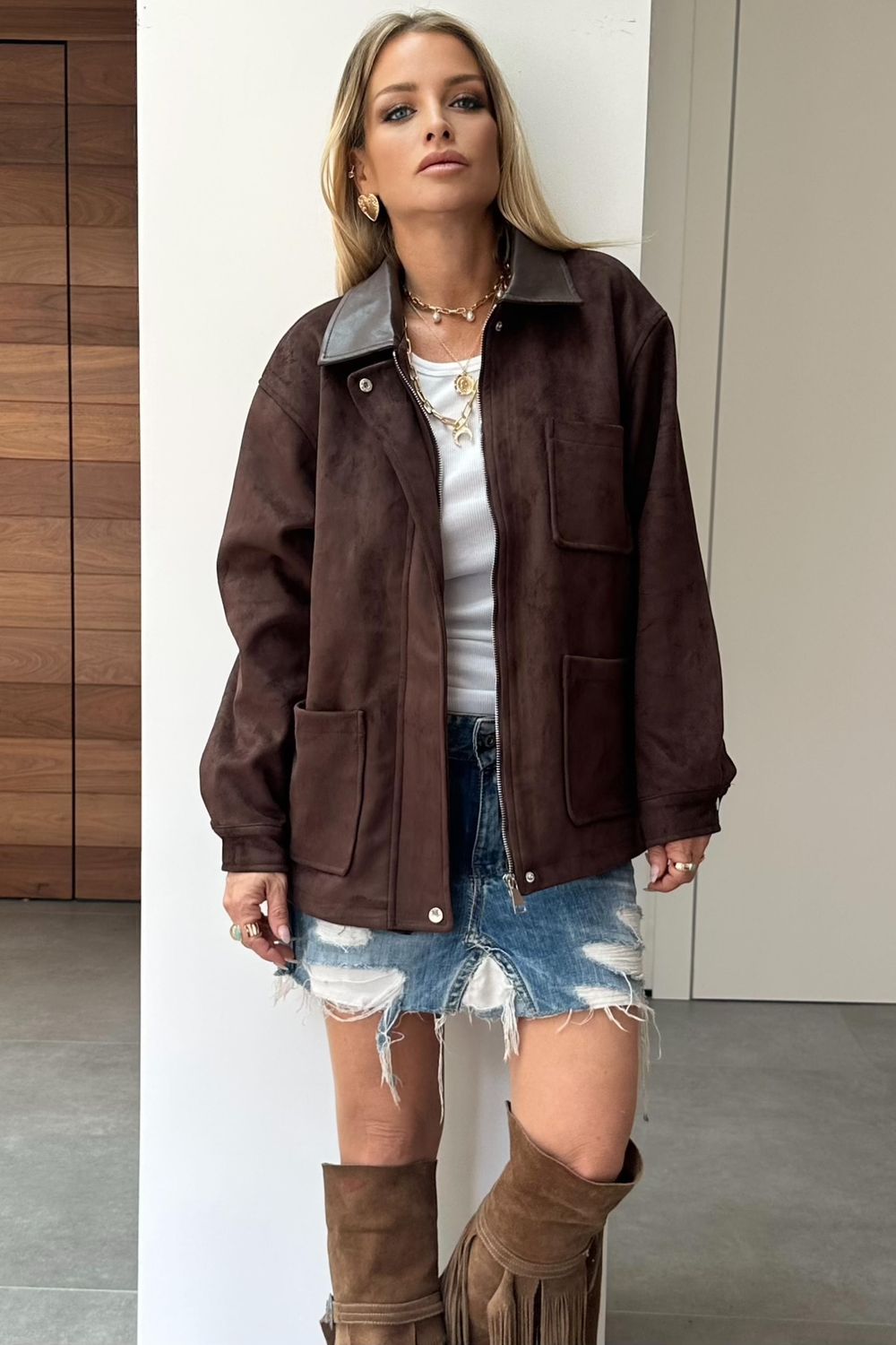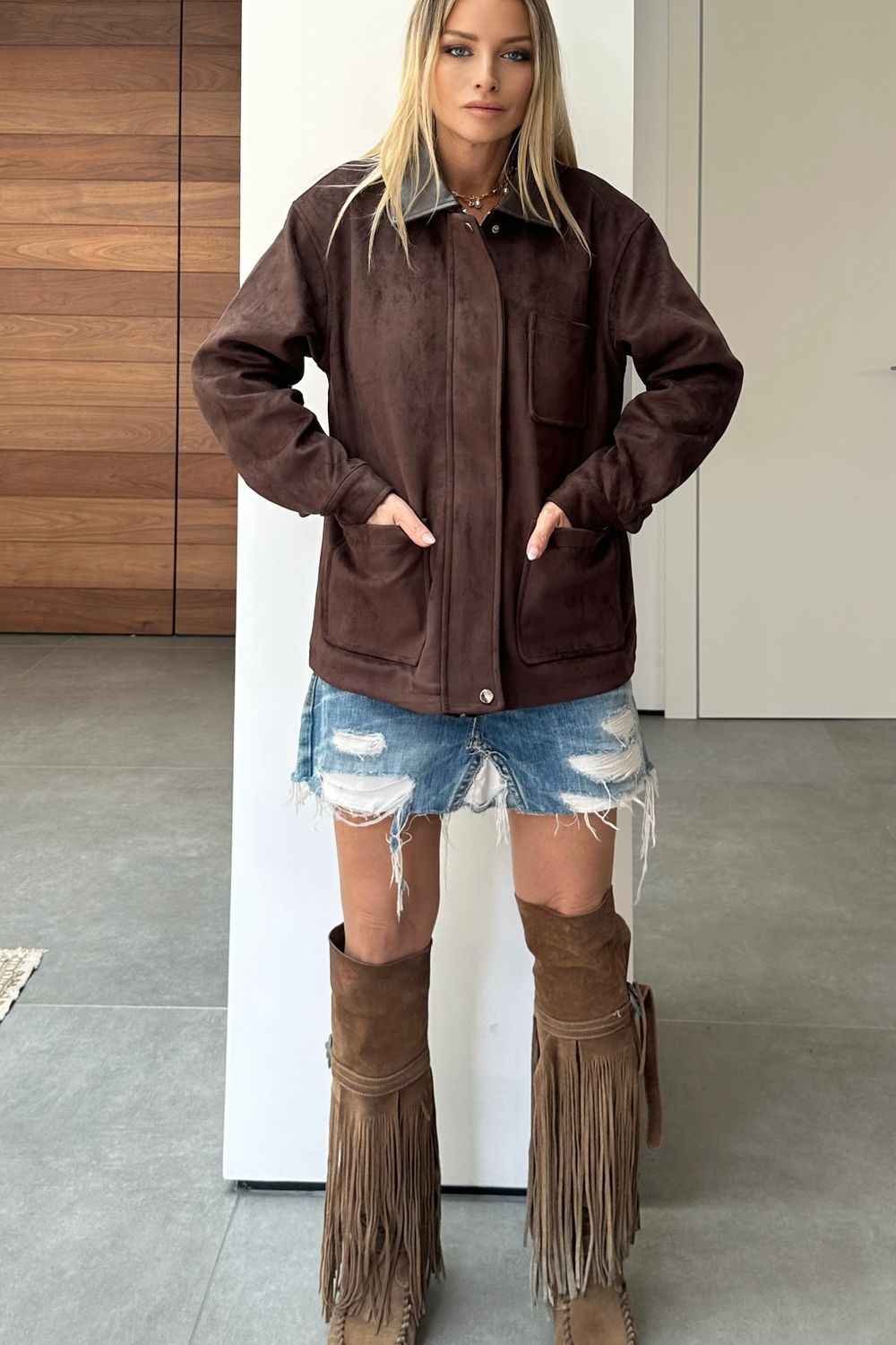 ✨ ג׳קט זמש קלאסי בצבע שוקולד – ONE SIZE ✨