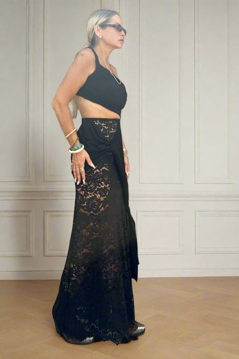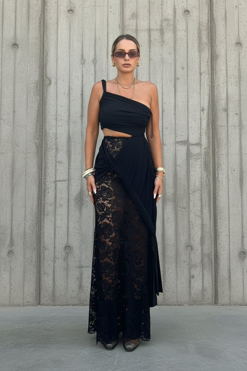 שמלת מקסי שחורה, עם כתף אחת סקסית ואוורירית ,