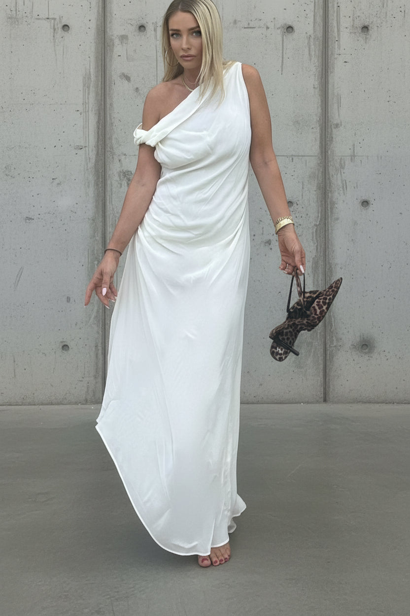 שמלה קלאסית ארוכה שניתנת ללבישה עם כתף שמוטה