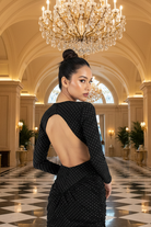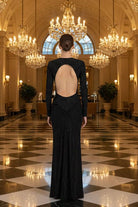 שמלת ערב דרמטית ומרשימה באורך מקסי בשילוב מחשוף גב עמוק