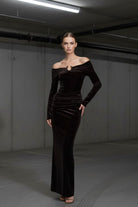 שמלת ערב מקסי אוף־שולדר מבד קטיפה שחור