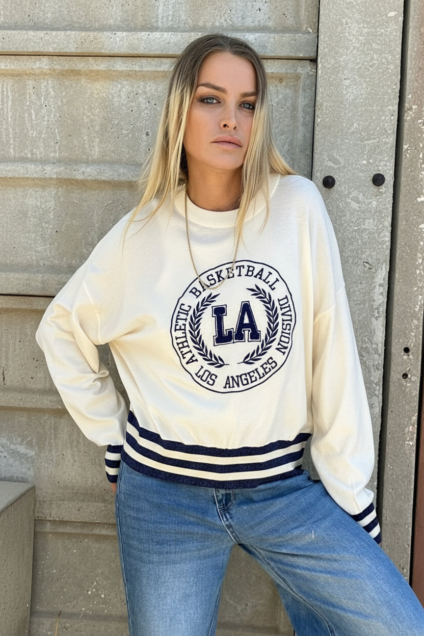 סריג אוברסייז נוח וסופר סטייל, עם הדפס LA – Athletic Basketball Division במראה קולג’ יוקרתי.