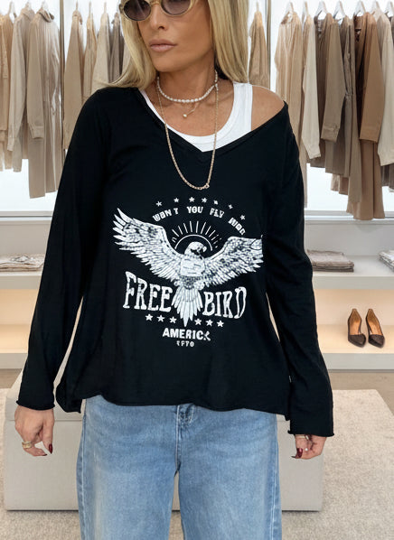 החולצה בעלת גזרה משוחררת ונינוחה, בד רך ונעים על הגוף, מושלמת לשילוב עם ג’ינס, טרנינג או חצאית לסטייל מלא אופי.