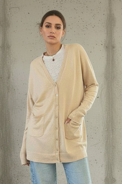 קרדיגן עשוי מבד דקיקי בגרת אוברסייז