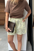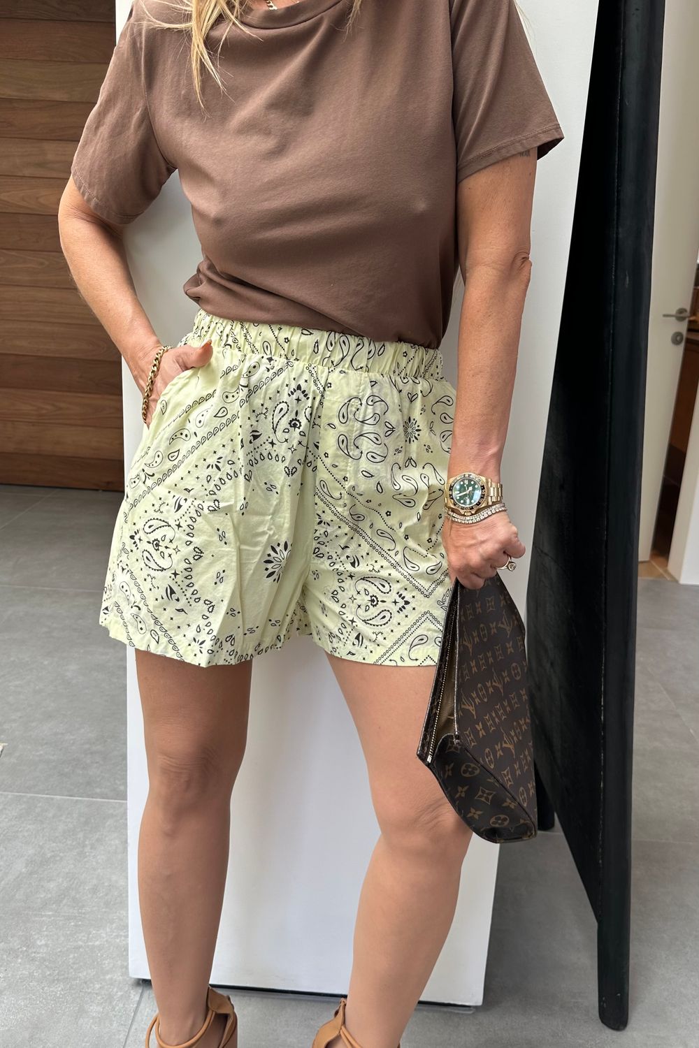 שורטס בד הדפס בנדנה בגוון פיסטוק בהיר
