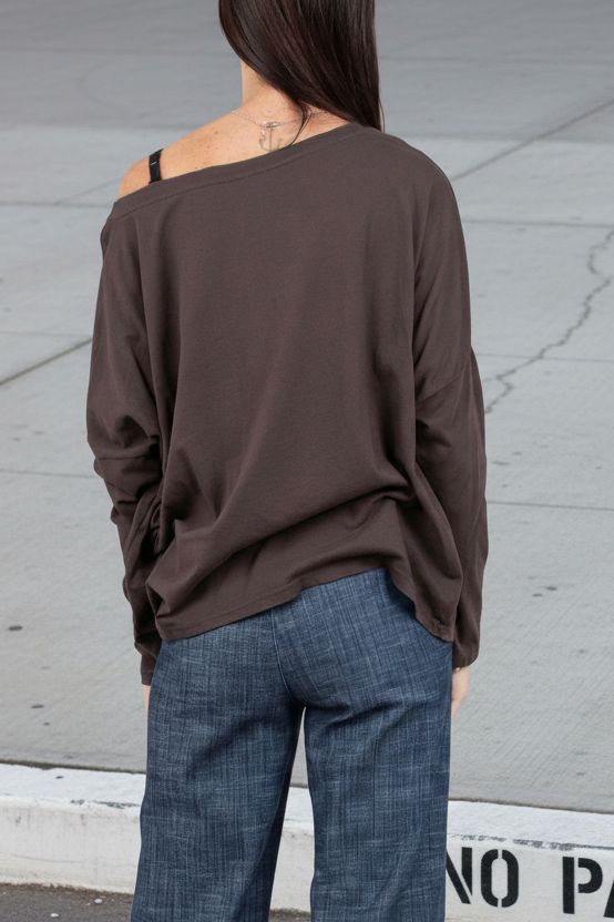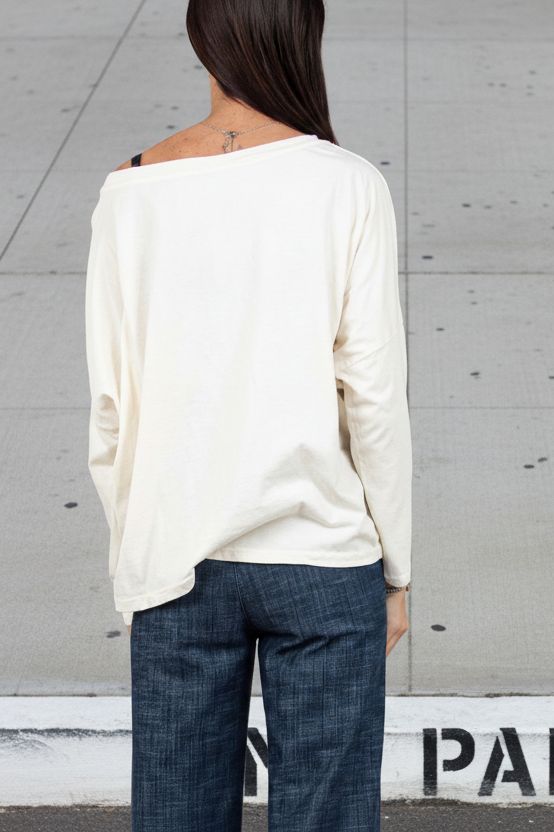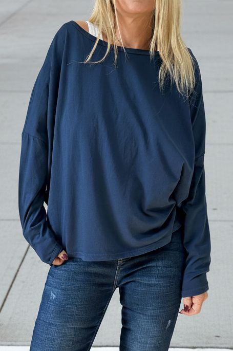 חולצת כותנה רכה ונעימה בגזרת אוברסייז קלילה, עם מחשוף רחב וצוואר עגול מעט שניתן להוריד על הכתף לסטייל נשי ולא מתאמץ.