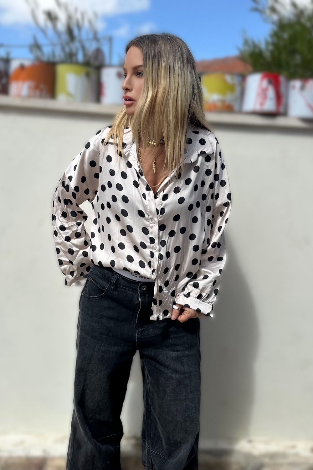 חולצה מכופתרת בהדפס נקודות קלאסי ושיקי