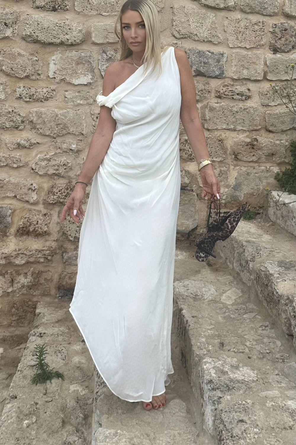 שמלה קלאסית ארוכה שניתנת ללבישה עם כתף שמוטה