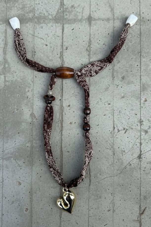 צ׳וקר ייחודי בסגנון בוהו־שיק, עשוי רצועת בד מודפסת בשילוב חרוזי עץ טבעיים.