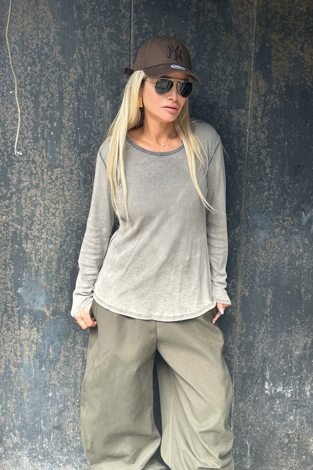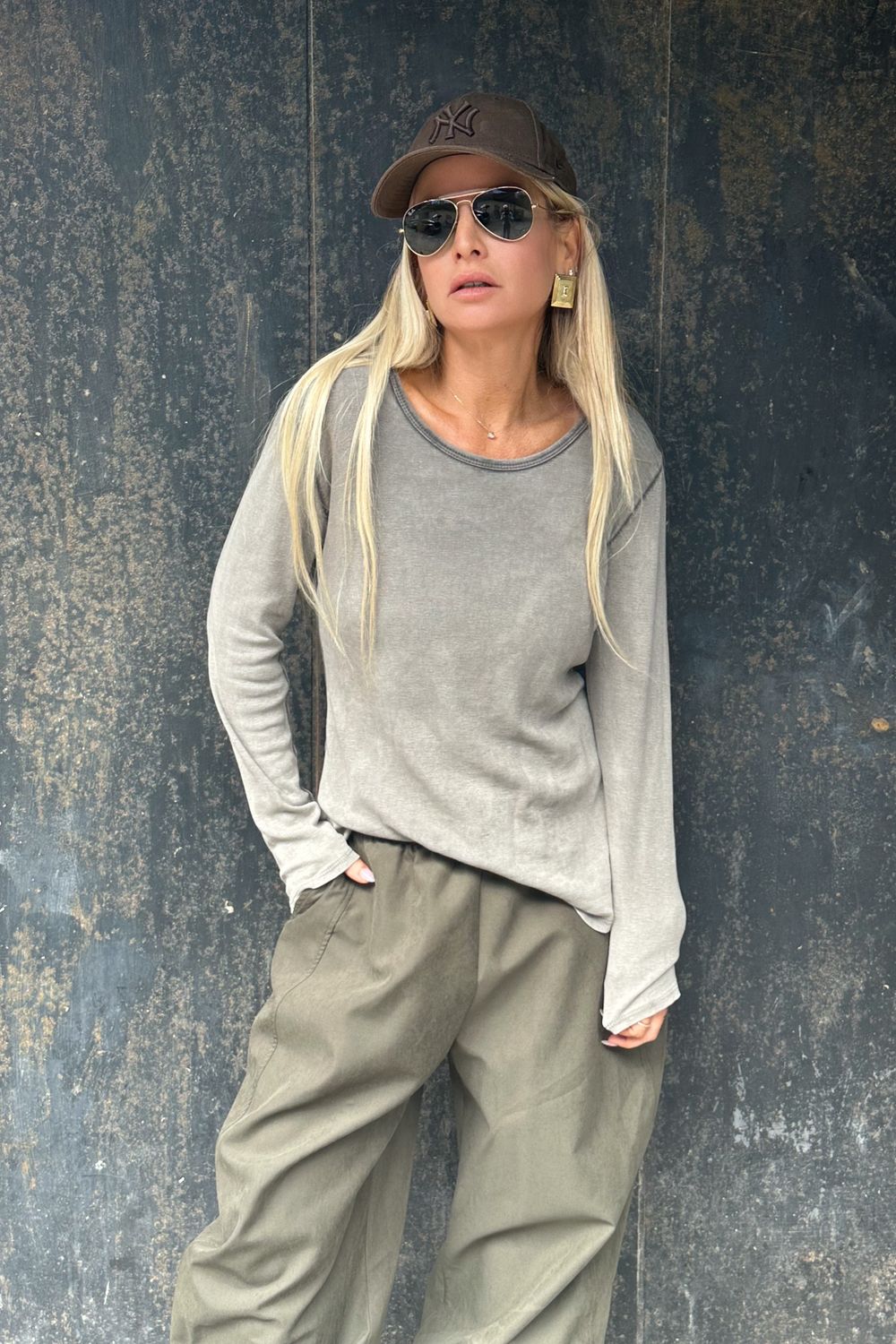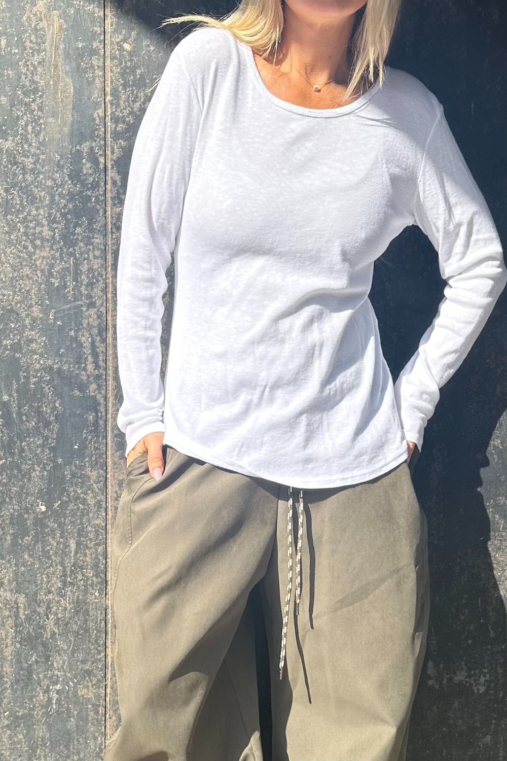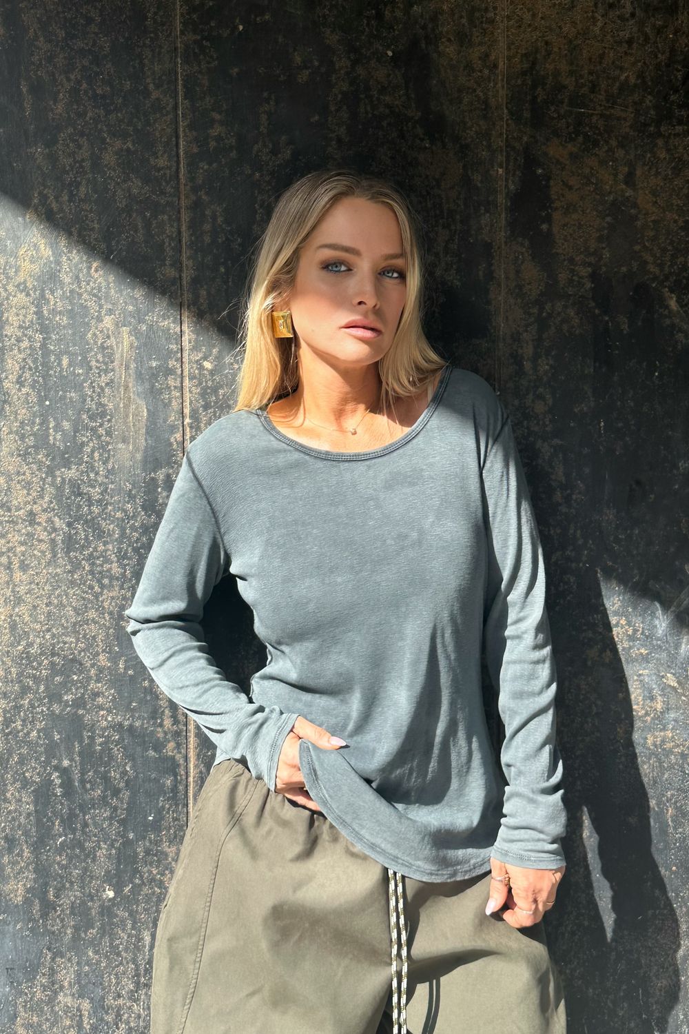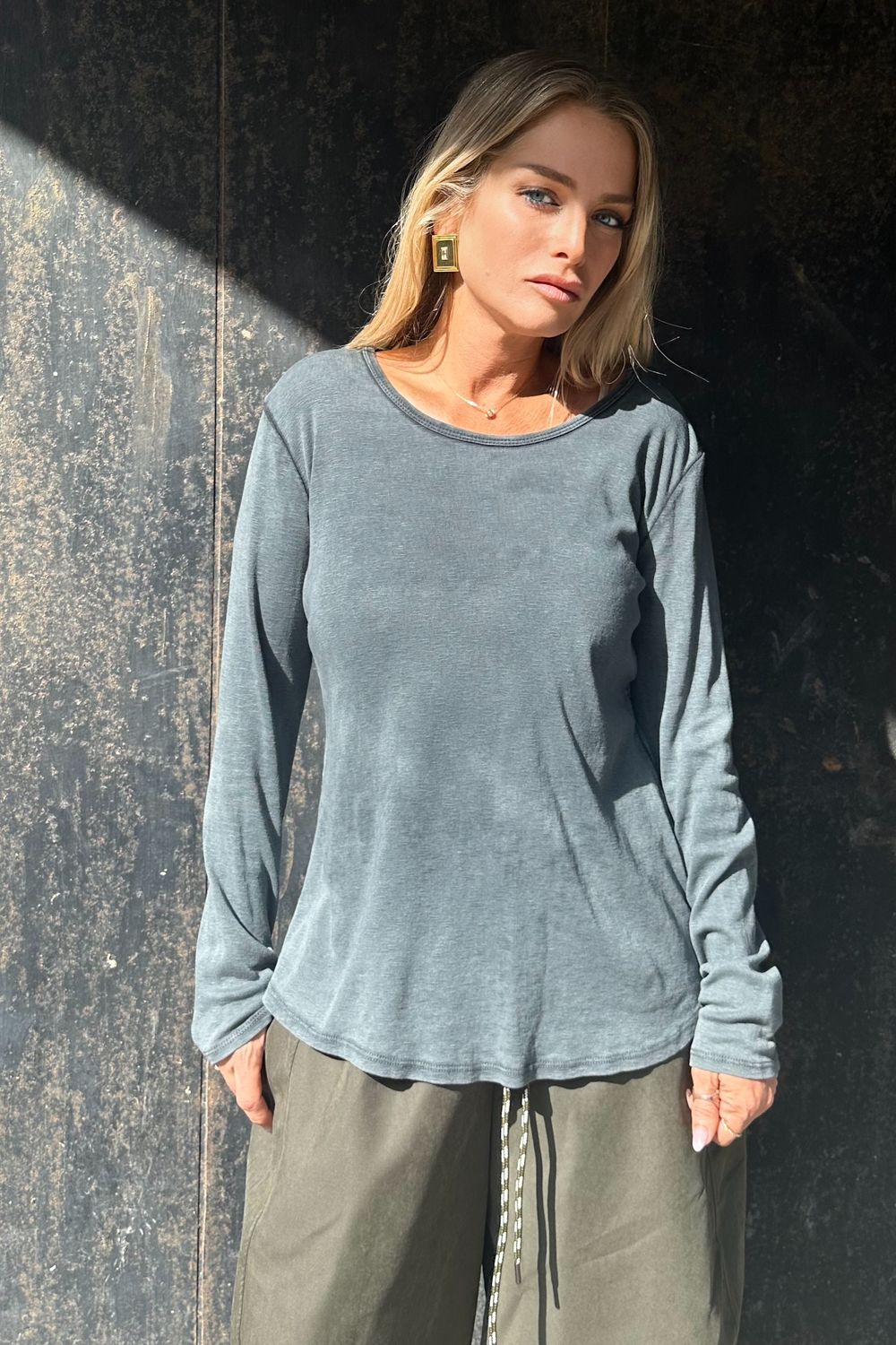 בעלת מפתח עגול עדין וסטייל effortless.