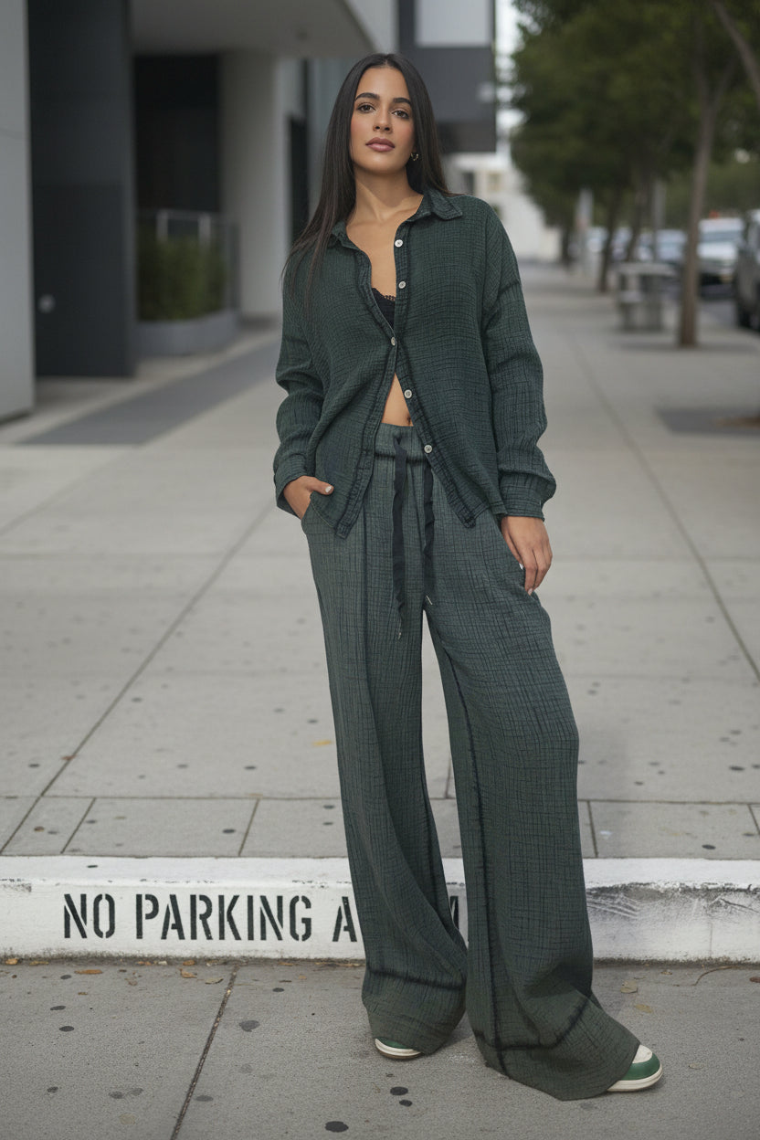 ניתן לשלב עם חולצת גזה תואמת לאאוטפיט שלם ומדויק
