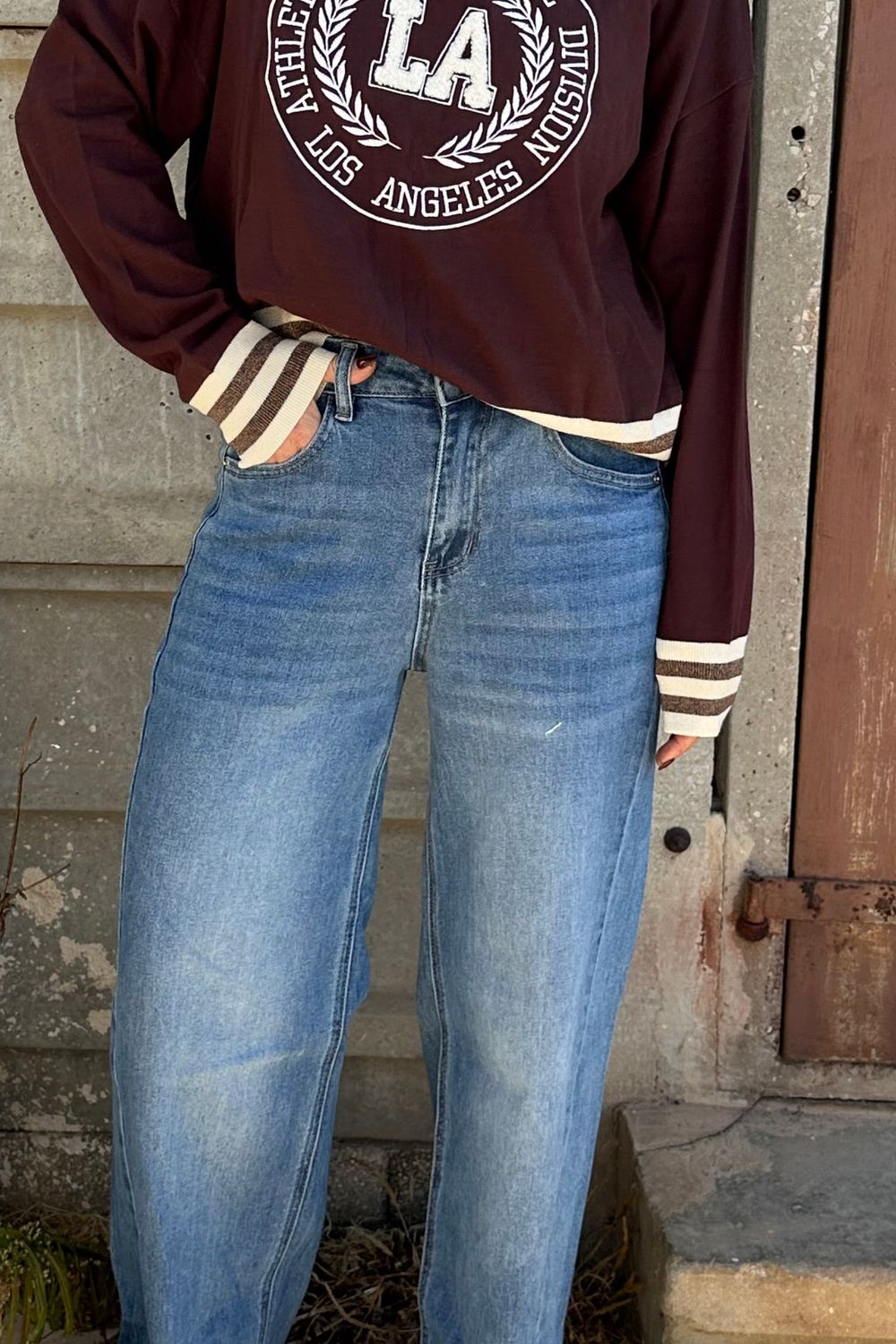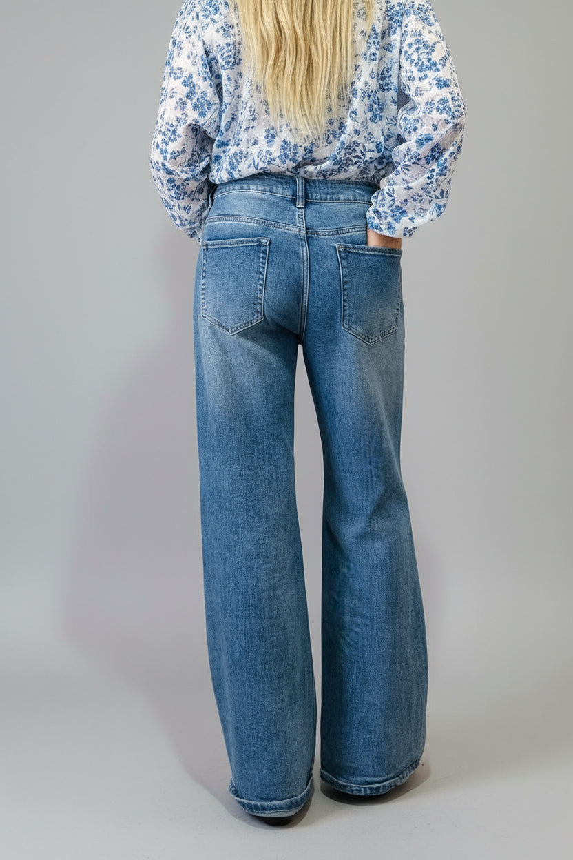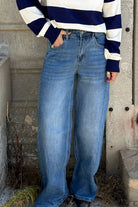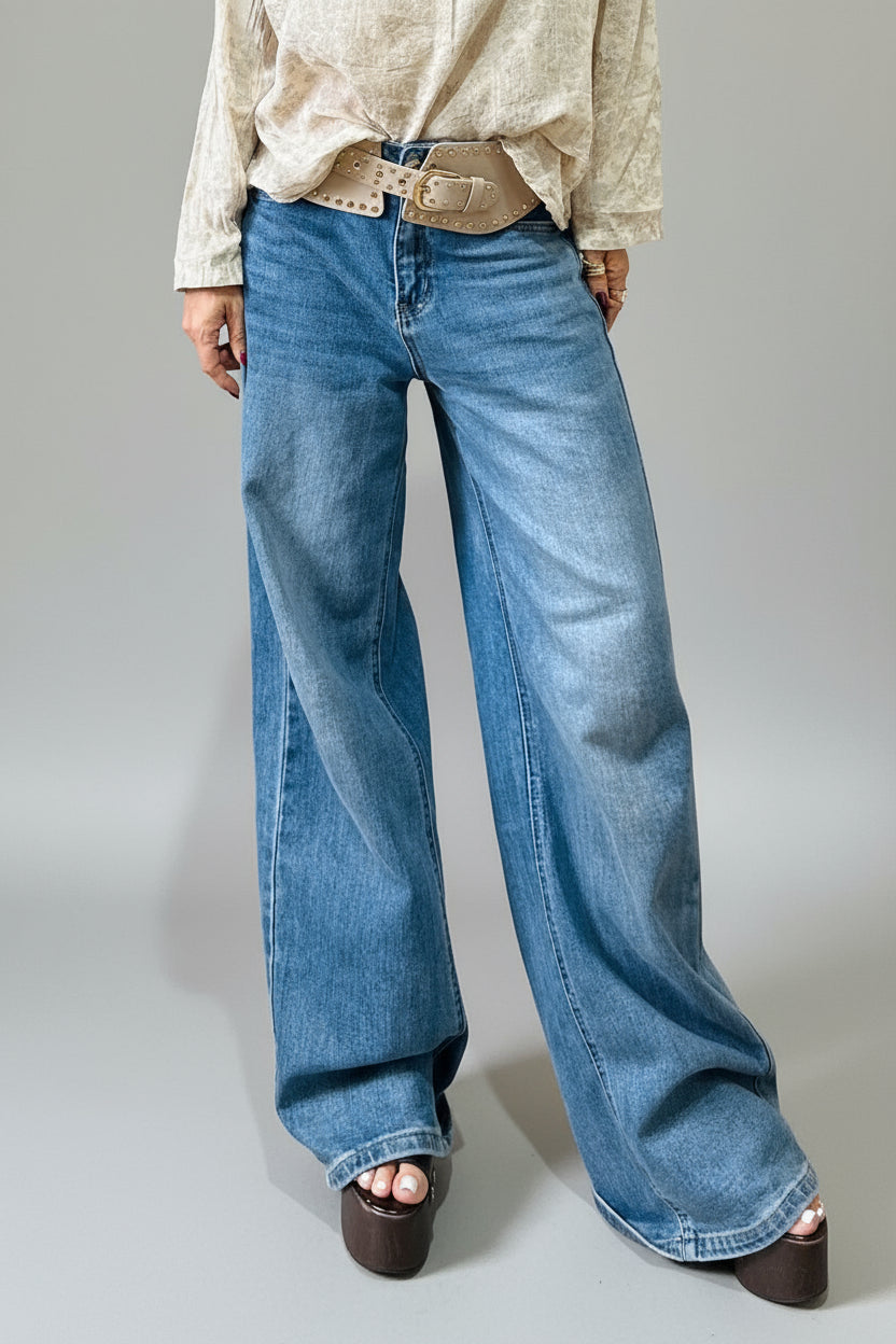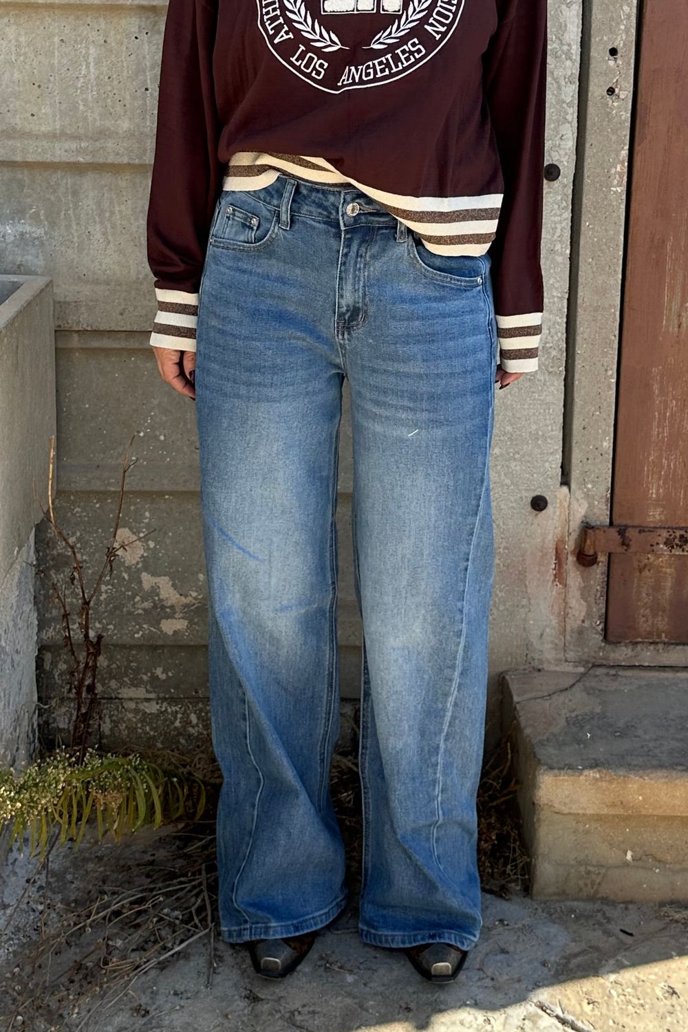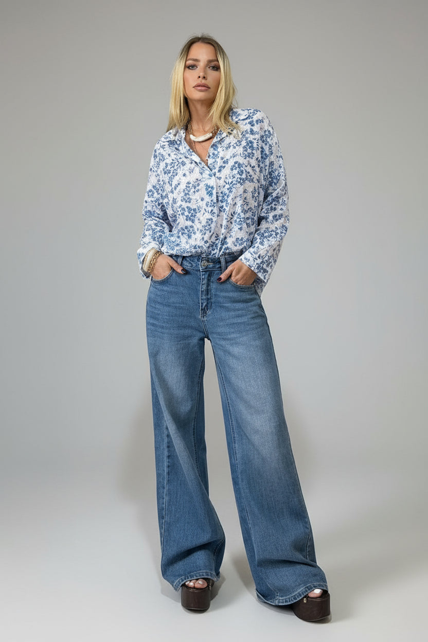 הג’ינס שאת חייבת לעונה – גזרה גבוהה שמחמיאה לגוף ונשפכת למטה ברוחב מושלם. ג’ינס פלייר (Flare) בגוון כחול קלאסי עם שטיפות עדינות, באורך מלא שמאריך את הרגליים ומשדר שיק effortless – מתאים לנעלי עקב, סניקרס או סנדלים.