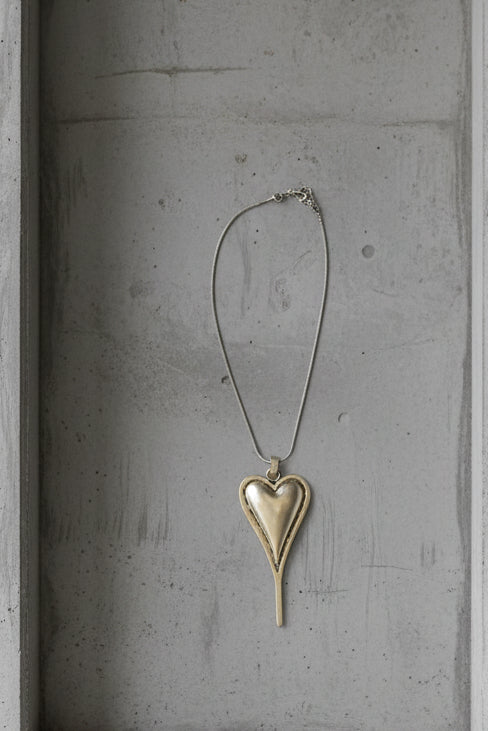 שרשרת עדינה עם תליון לב מוזהב בעיצוב ארוך ואלגנטי, בעל טקסטורה ייחודית ומראה אמנותי.