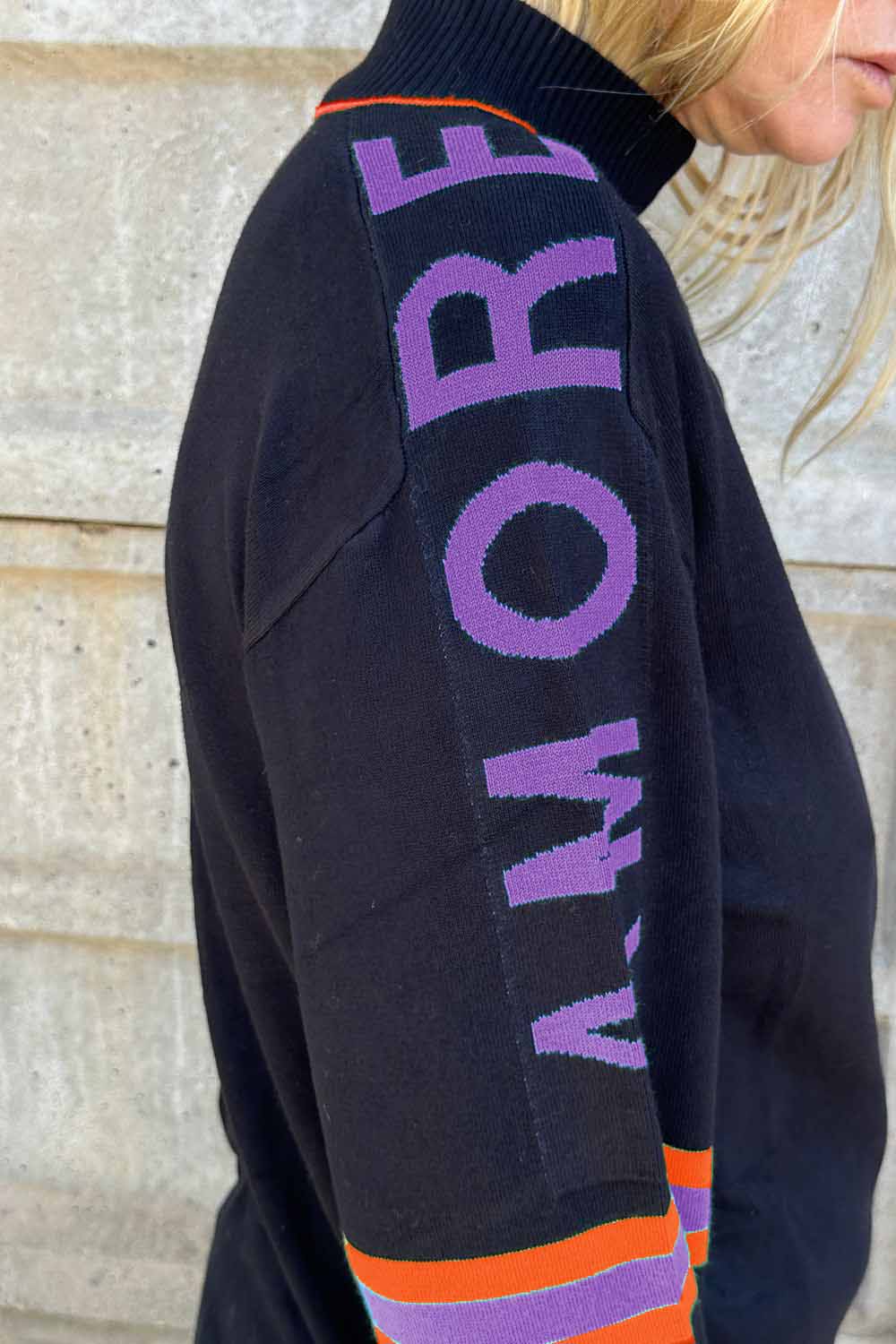 גזרה נינוחה ונעימה, עם כתפיים מודגשות וכיתוב AMOUR לאורך השרוולים שמוסיף סטייל ומסר.