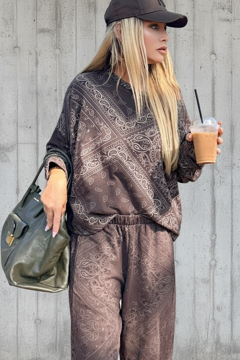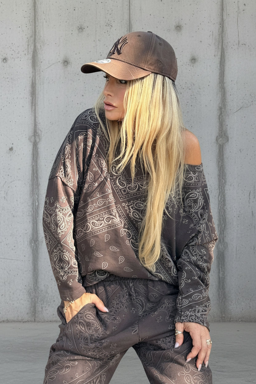 סווטשירט בנדנה אוברסייז בגזרה משוחררת ומדויקת, עם הדפס בנדנה מלא שמשדר וייב אורבני מחוספס.
